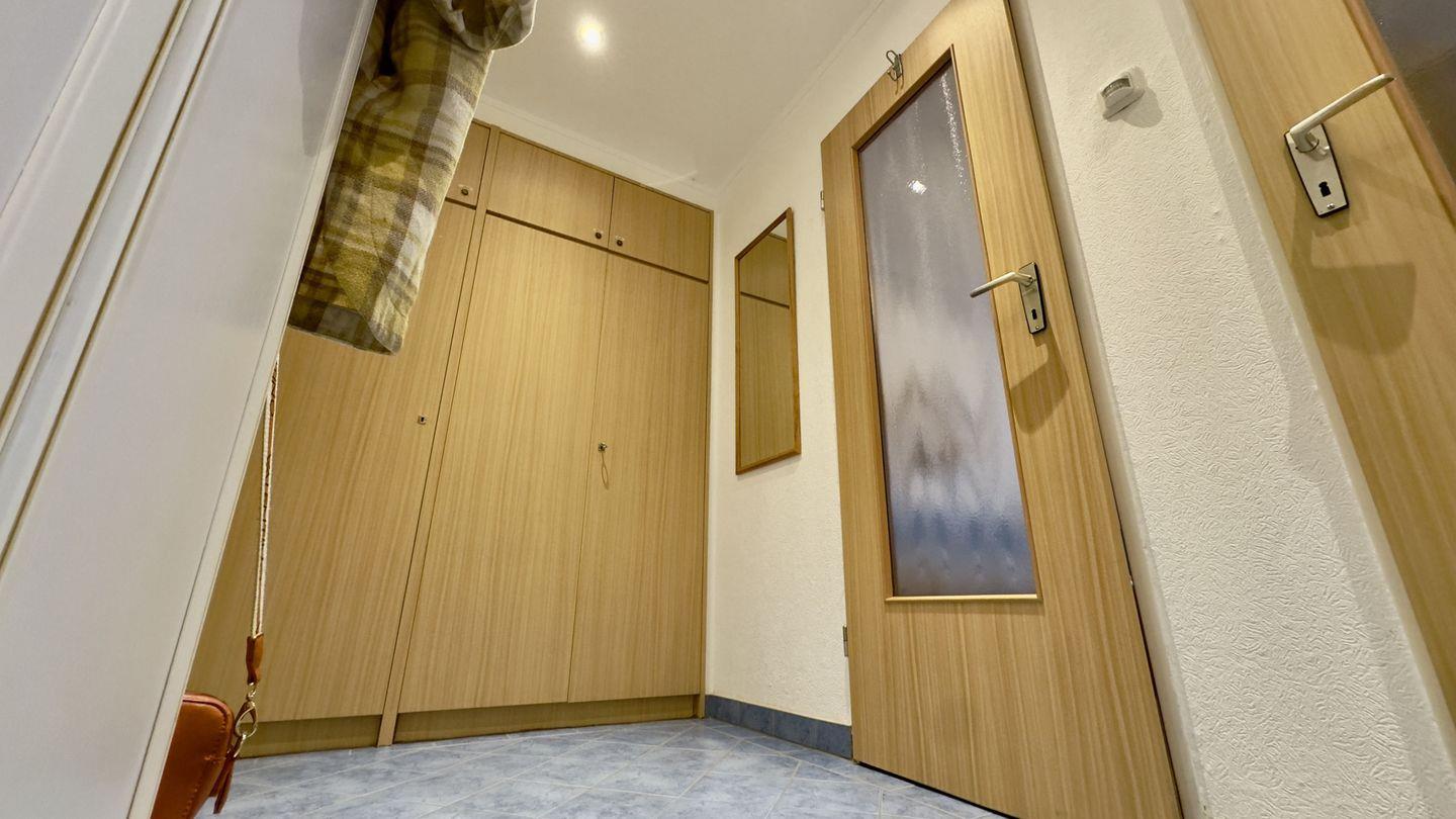 Schon der kleine, aber feine Vorflur heißt Sie herzlich willkommen. Mit einer Garderobe und Stauraum bietet er Platz für Ihre Kleidung. Von hier aus gelangen Sie in das helle, freundlich gestaltete Wohnzimmer, das mit einer großen Fensterfront für eine lichtdurchflutete Atmosphäre sorgt. Genießen Sie entspannte Stunden auf dem komfortablen Schlafsofa, das zugleich eine zusätzliche Schlafmöglichkeit bietet. Ob Sie den Ausblick schweifen lassen oder es sich vor dem TV gemütlich machen – hier fühlen Sie sich wie zuhause. Der Essbereich im Wohnzimmer lädt mit einer gemütlichen Sitzgruppe zu gemeinsamen Mahlzeiten ein.