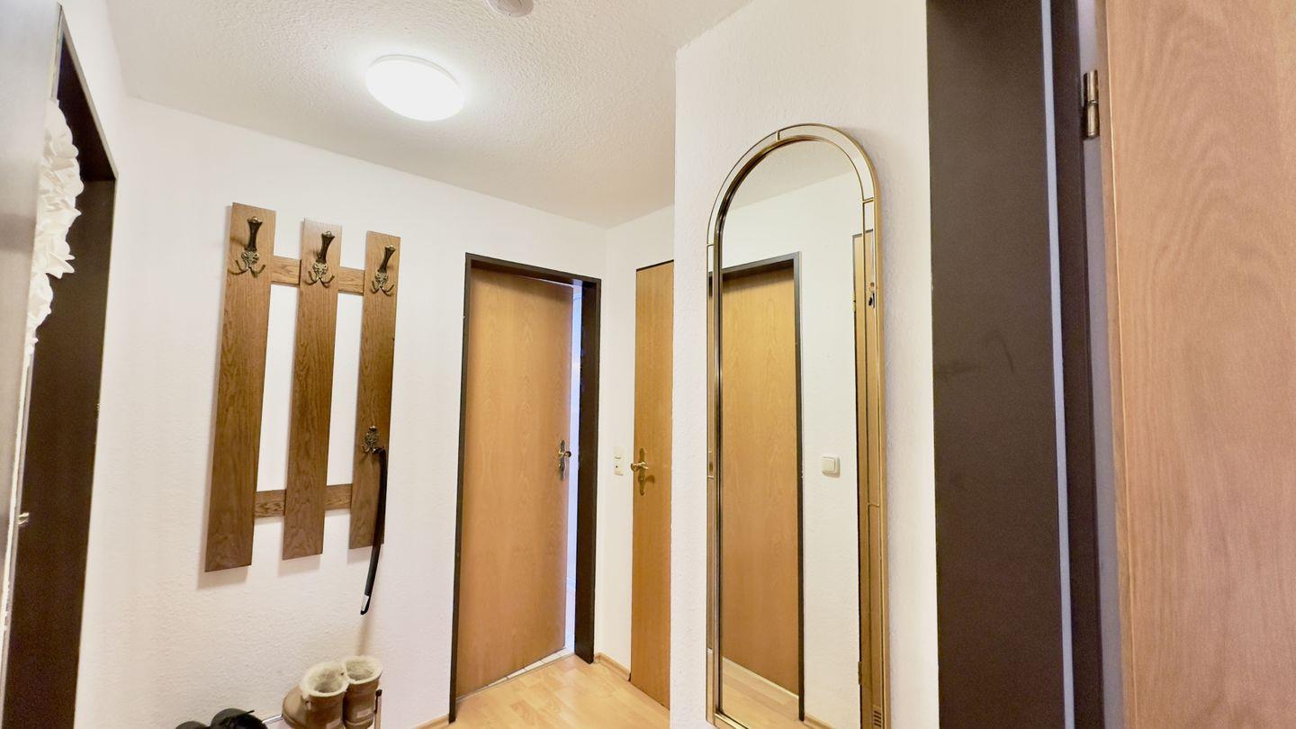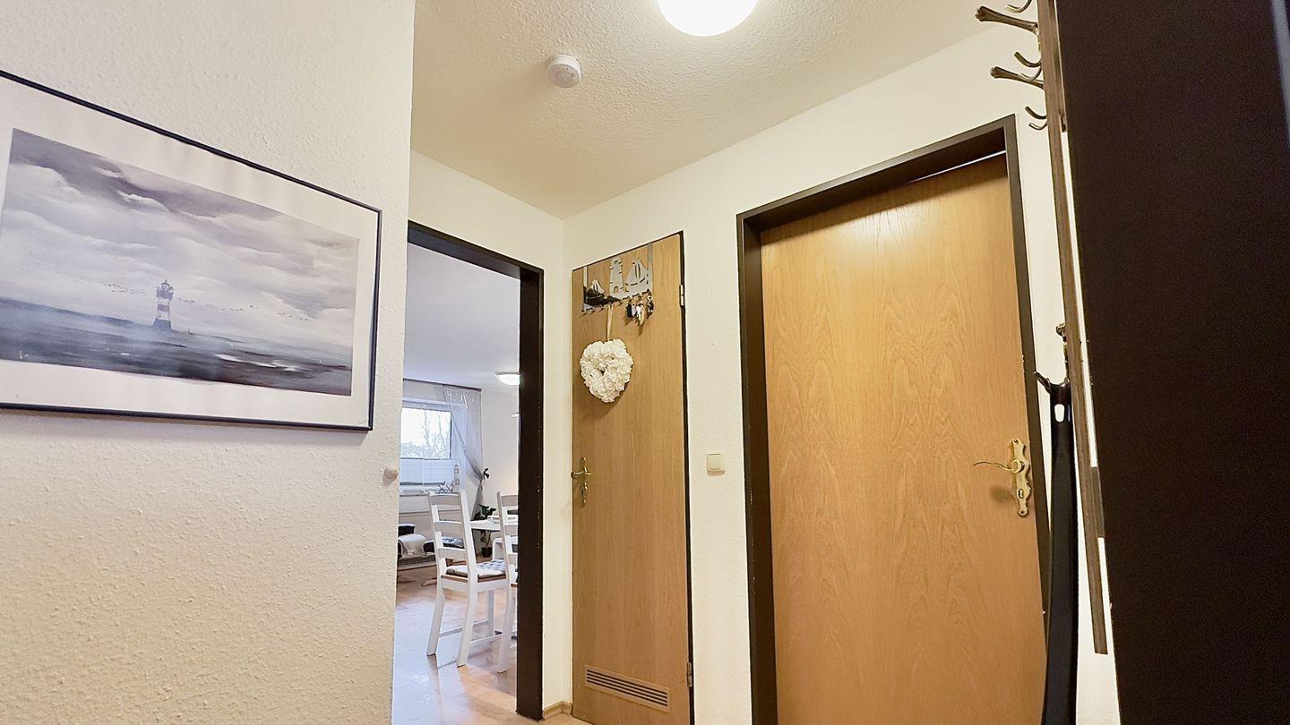 Die Ferienwohnung Friesenstube bietet auf 52m² Platz für bis zu 4 Personen und liegt im ersten Stock eines Mehrfamilienhauses in einer ruhigen Wohnsiedlung in Horumersiel. Hier finden Sie Ihren ganz persönlichen Ort der Ruhe. Der Flur empfängt Sie mit einer Garderobe und einem Ganzkörperspiegel, ideal für den letzten Blick, bevor Sie das Haus verlassen.