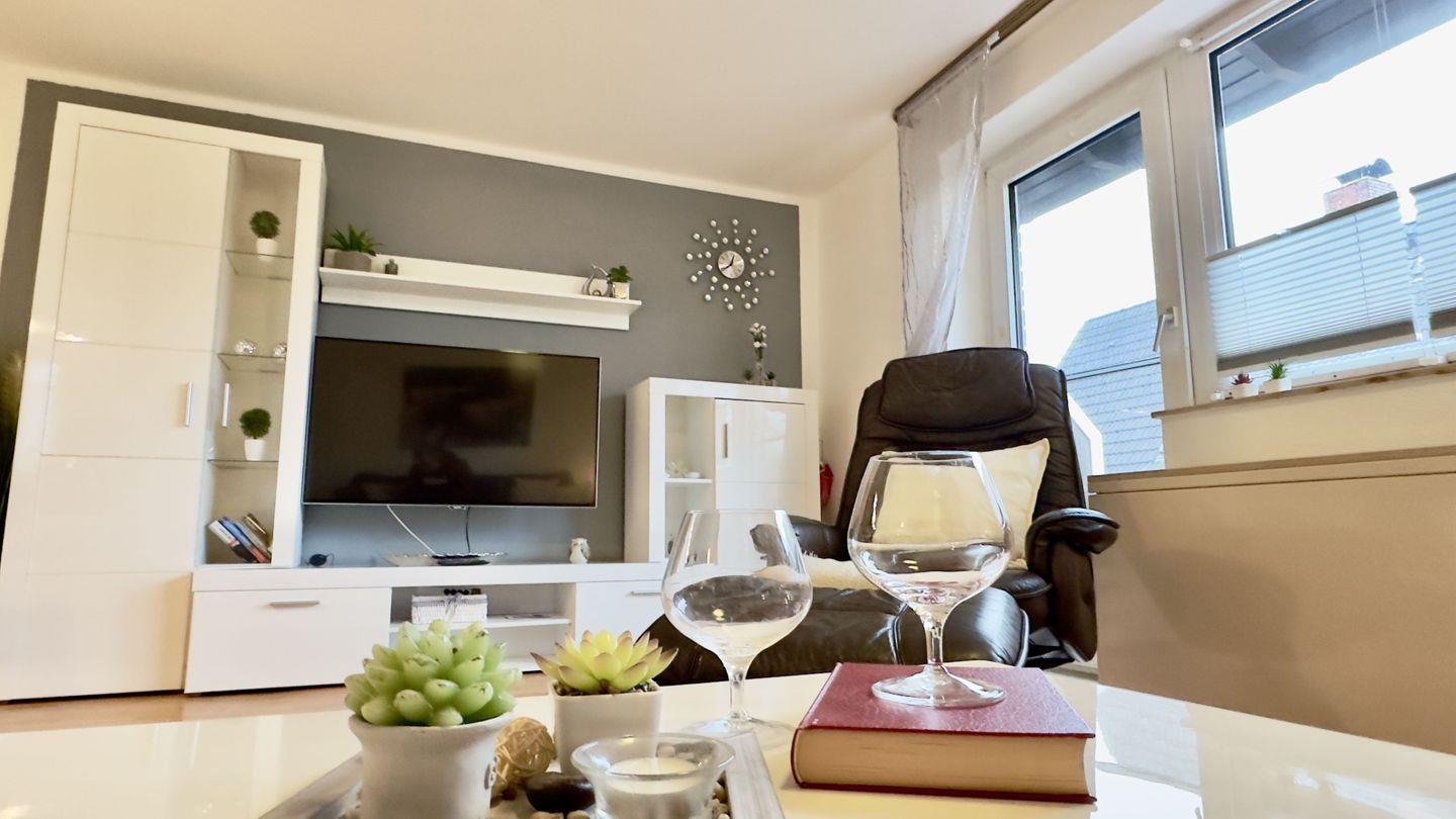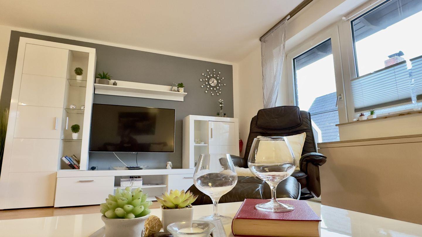 Das großzügige, helle und moderne Wohnzimmer ist der perfekte Rückzugsort für entspannte Stunden.