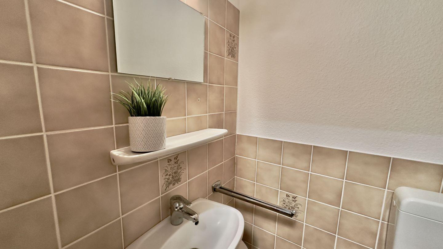 Die großzügige Auffahrt und das Carport bieten ausreichend Stellfläche für Ihre Fahrzeuge und Fahrräder. Schon beim Betreten des Hauses empfängt Sie der einladende Flur in warmen Erdtönen, der mit viel Stauraum für Ihre Garderobe punktet. Ein separates Gäste-WC ist hier ebenfalls vorhanden.
