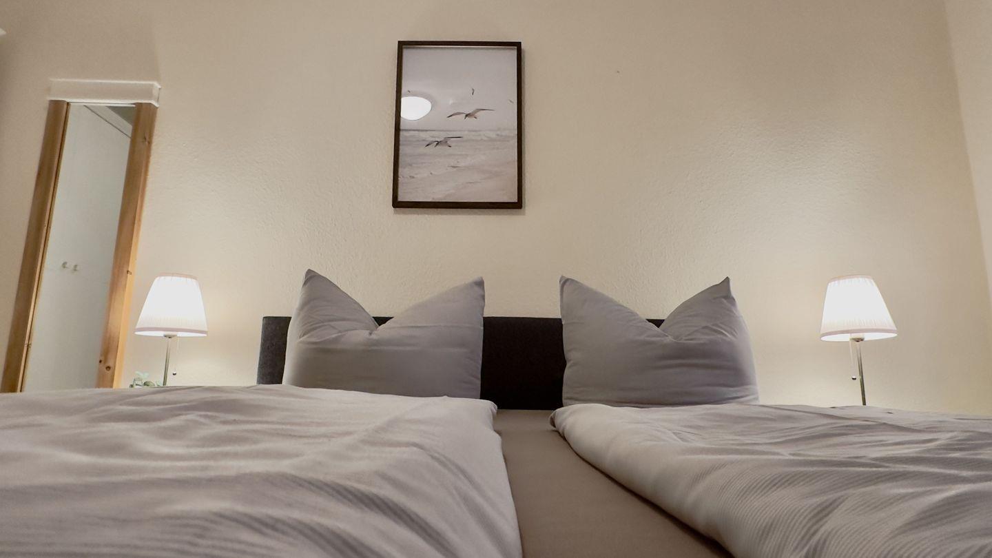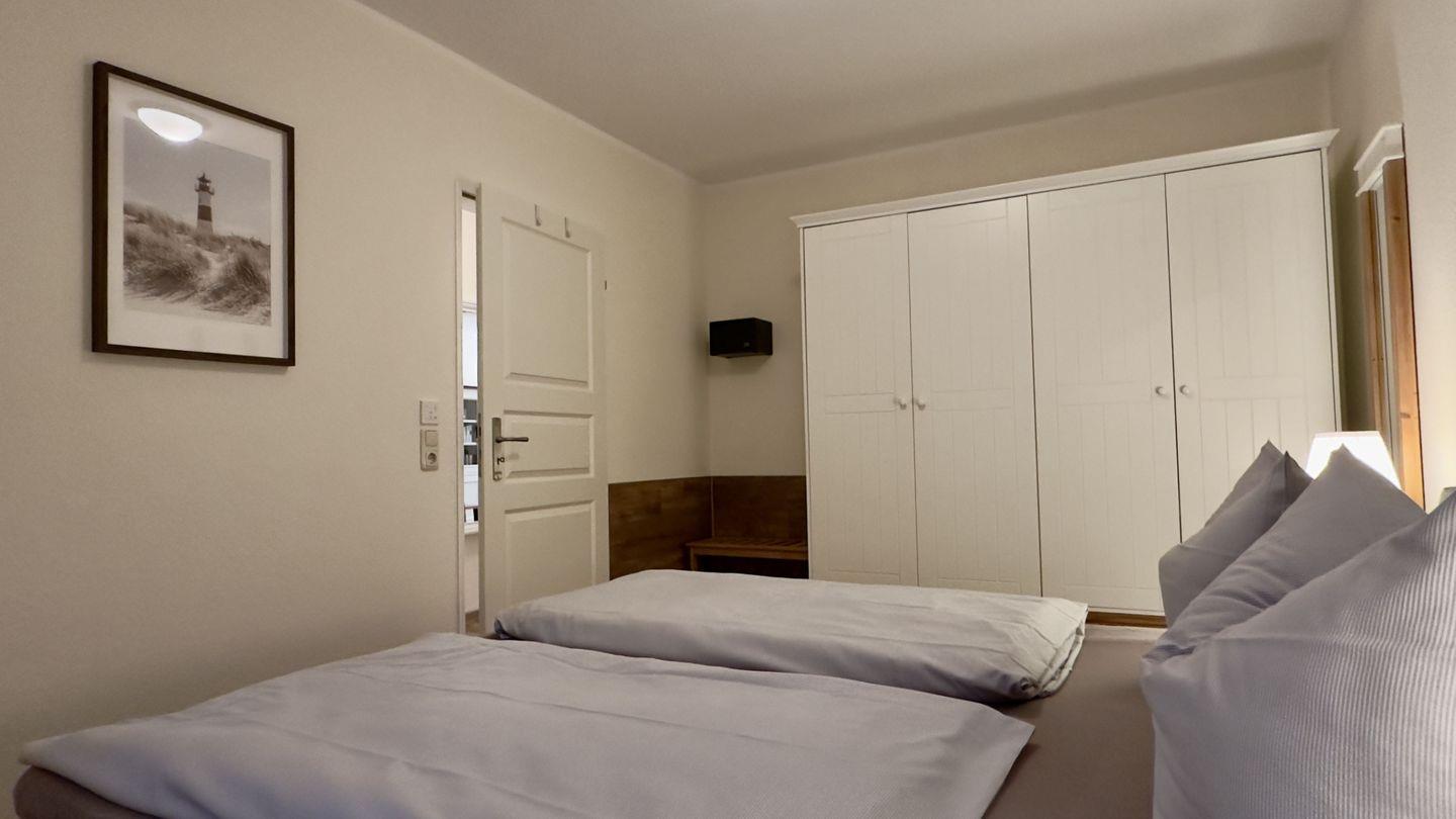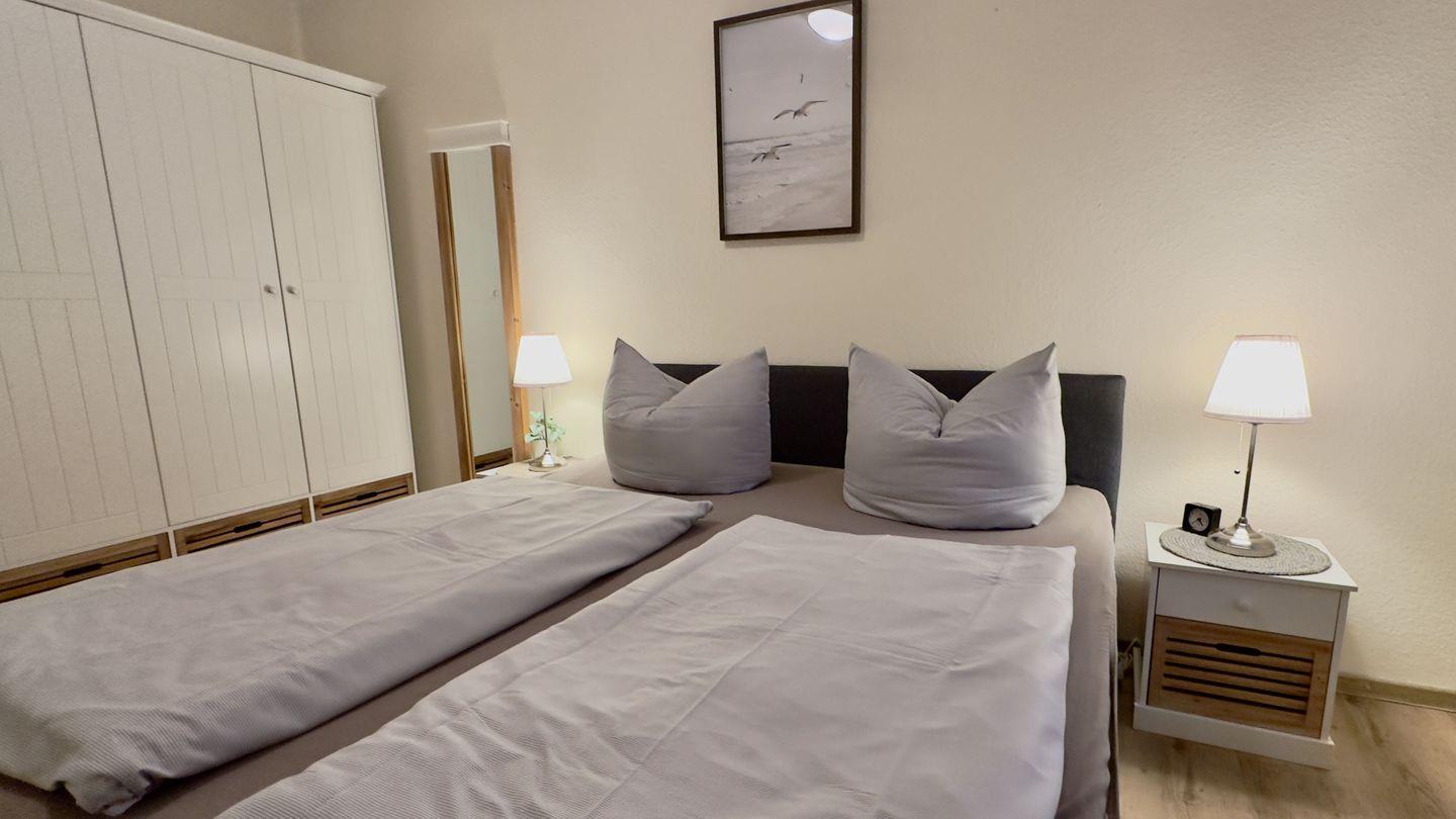 Im separaten Schlafzimmer erwarten Sie ein komfortables Boxspringbett und ein geräumiger Kleiderschrank mit ausreichend Platz für Ihre Garderobe. Hier können Sie sich rundum wohlfühlen und erholsame Nächte genießen.
