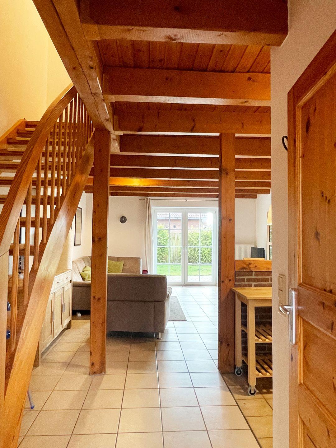 Der Außenbereich beeindruckt mit einem wunderschönen Garten, der für Spiel und Spaß einlädt. Genießen Sie die Sonne auf der Terrasse oder entspannen Sie unter dem Sonnenschirm auf den Gartenmöbeln. Für den Familienausflug gibt es einen Bollerwagen, der Ihnen hilft, die Umgebung zu erkunden. Ihr Auto können Sie bequem im Carport abstellen, während Sie sich mit einem WLAN-Anschluss während Ihres Aufenthalts verbunden halten.