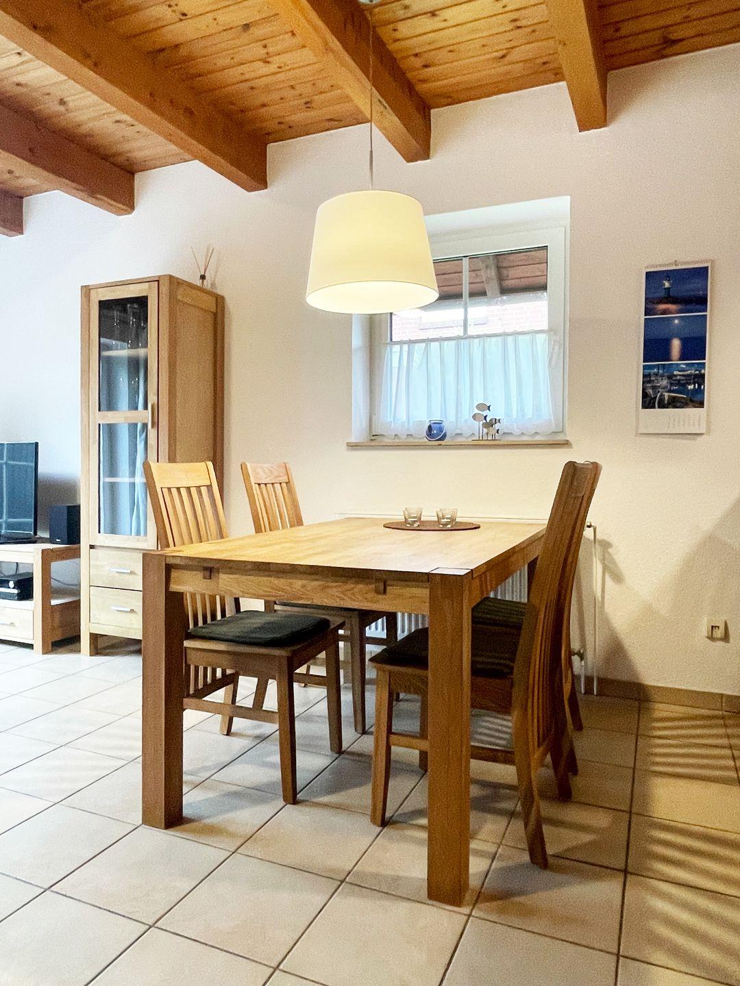 Das Deich-Chalet bietet Platz für bis zu vier Personen und eignet sich hervorragend für Familien oder Paare, die die Ruhe der Natur genießen möchten. Mit zwei gemütlichen Schlafzimmern und einem hellen Badezimmer erleben Sie hier sowohl Komfort als auch Gemütlichkeit. Die insgesamt drei Zimmer in zwei Etagen sind liebevoll eingerichtet und laden zum Verweilen ein. Ein eleganter Essbereich mit einem großen Esstisch sorgt dafür, dass Sie gemeinsame Mahlzeiten in geselliger Runde genießen können.