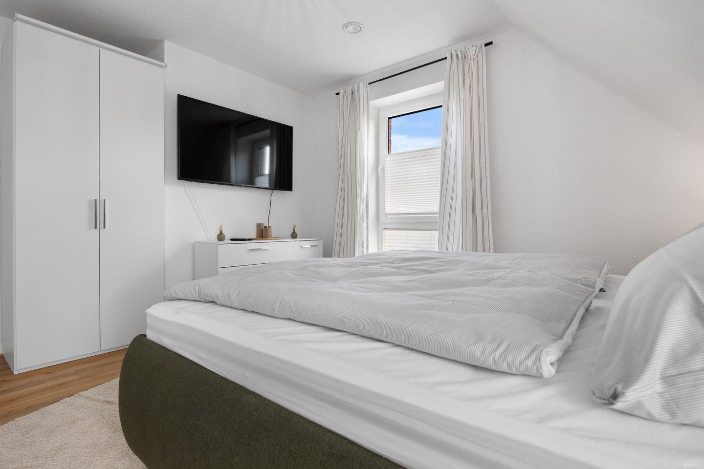 Das Ferienhaus Minna verfügt über drei komfortable Schlafzimmer, die Ihnen einen erholsamen Schlaf garantieren. Für Ihre Bequemlichkeit sind zwei Badezimmer vorhanden – eines davon mit Gäste-WC. Zusätzliche Ausstattung wie Haartrockner, Waschmaschine und Trockner sind ebenso vorhanden, um Ihren Aufenthalt so angenehm wie möglich zu gestalten.