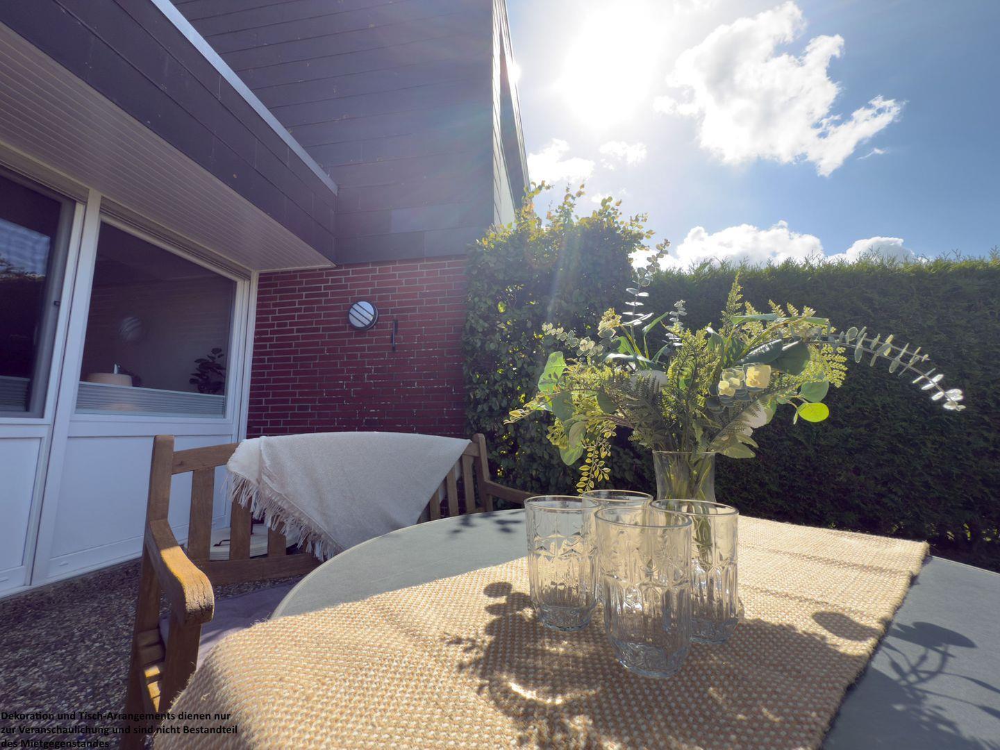 Der grüne Garten mit Terrasse, Möbeln und Elektrogrill lädt zum Entspannen ein. Nur wenige Schritte vom Strand entfernt – hier beginnt Ihr Urlaubsglück!