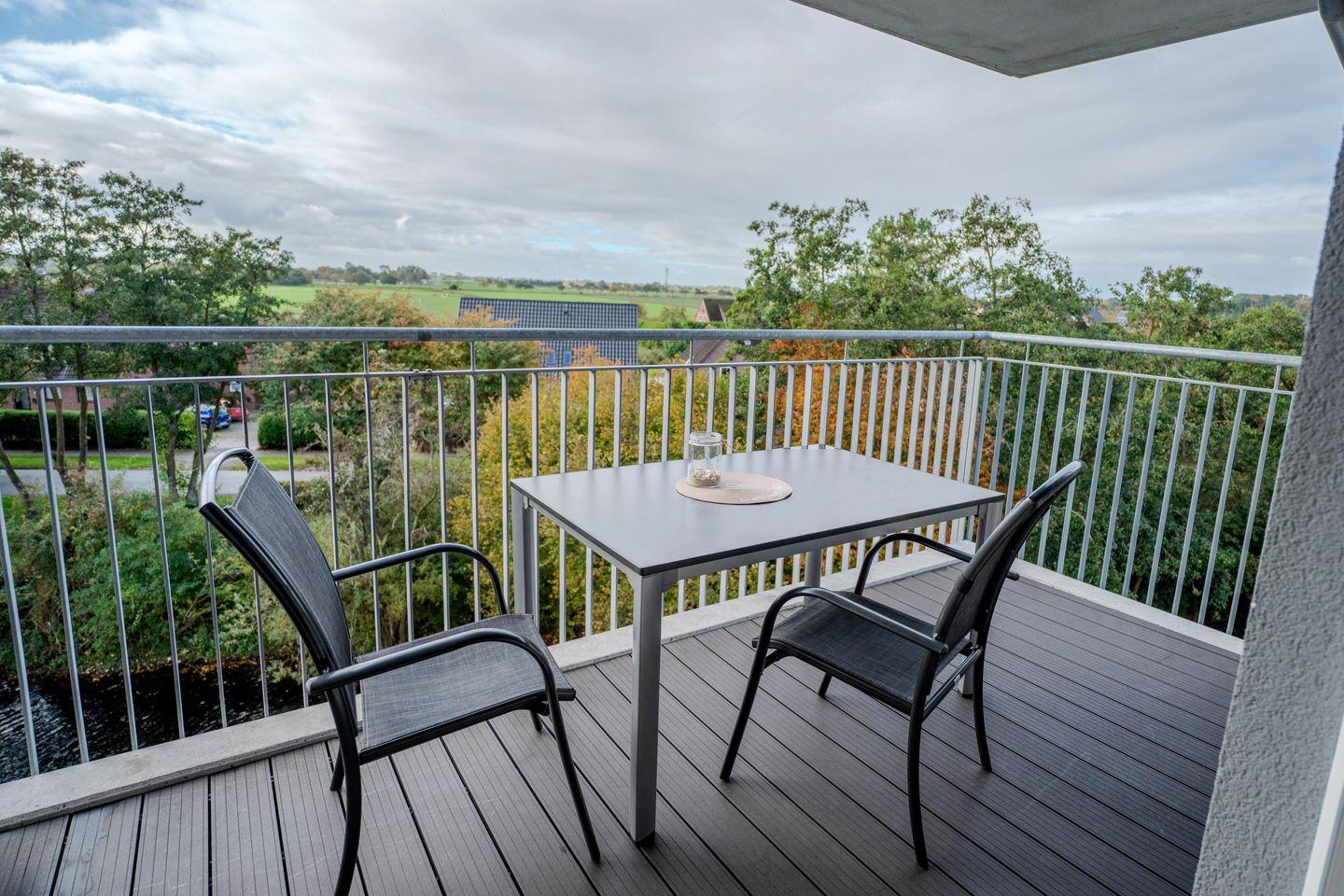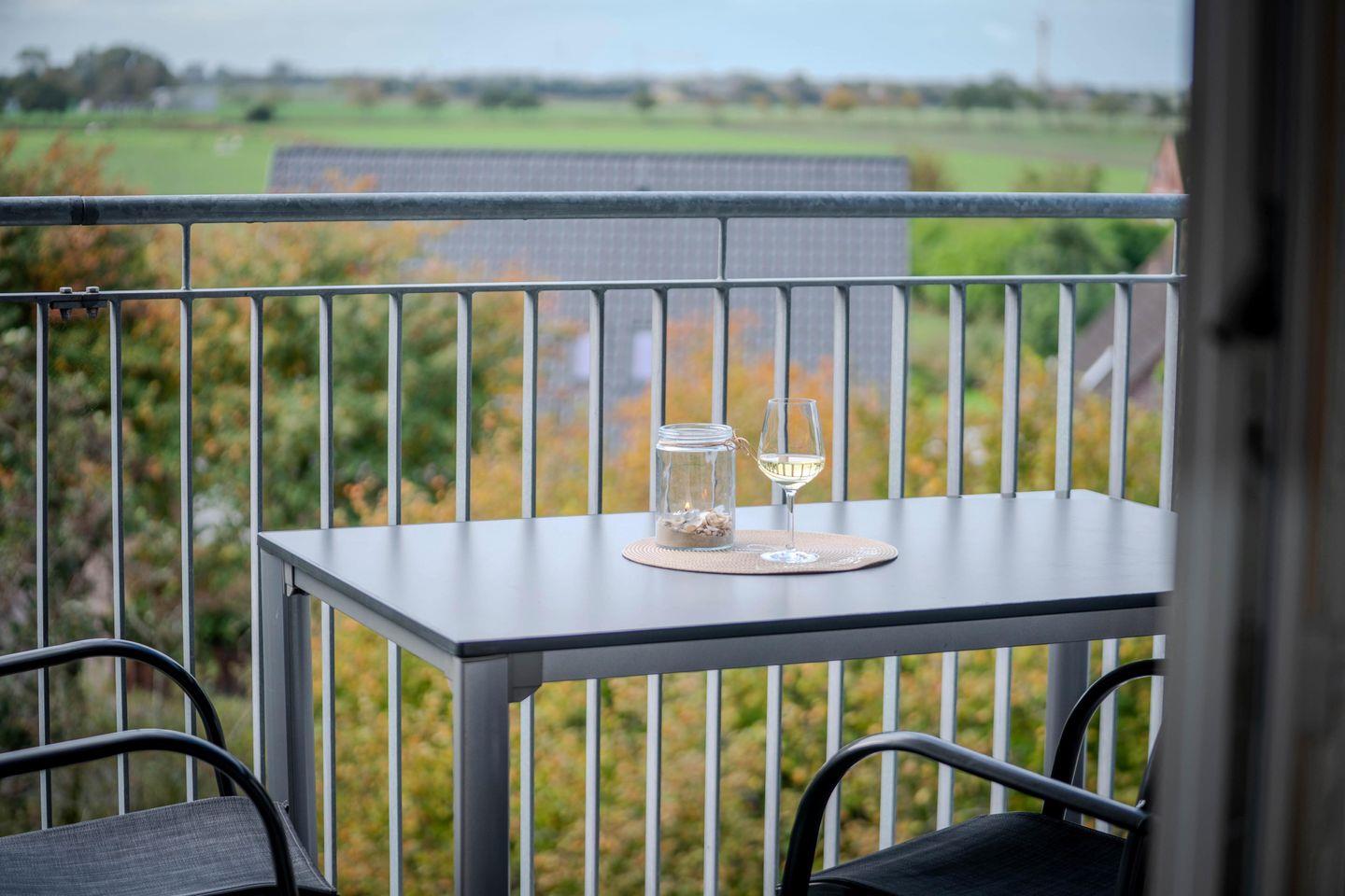 Ganz nach dem Namen unserer Wohnung: Auf dem überdachten Südbalkon mit Sitzmöbeln genießt Ihr den ganzen Tag Licht und Wärme. Ob Frühstück in der Morgensonne oder ein gemütlicher Abend beim Sonnenuntergang – hier seid Ihr immer auf der Sonnenseite.