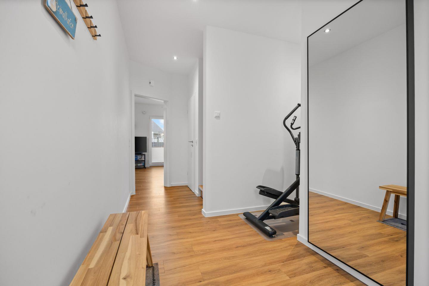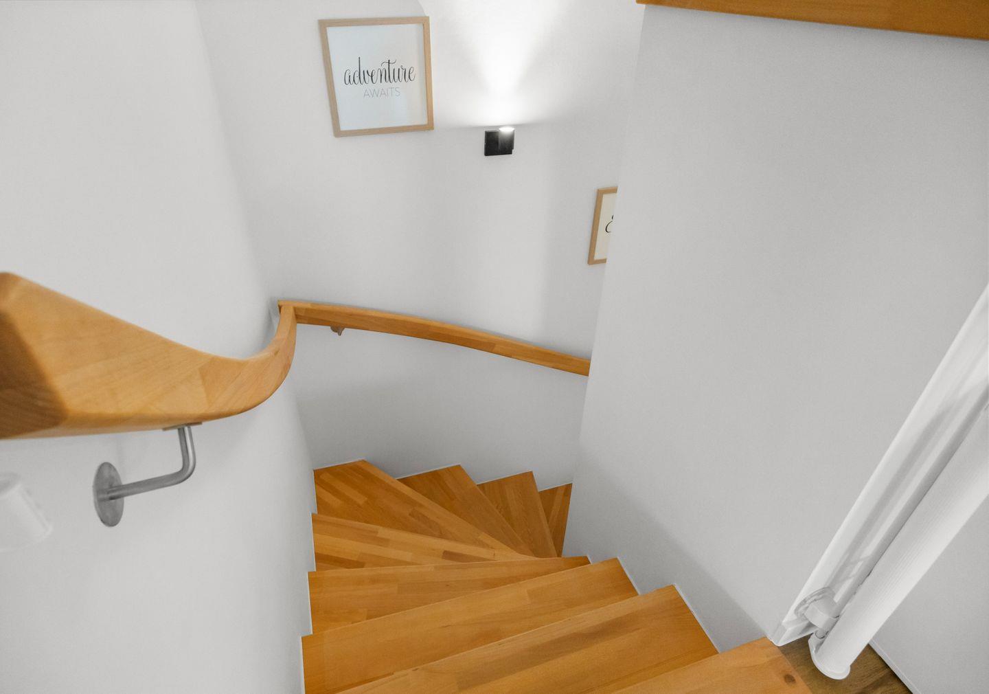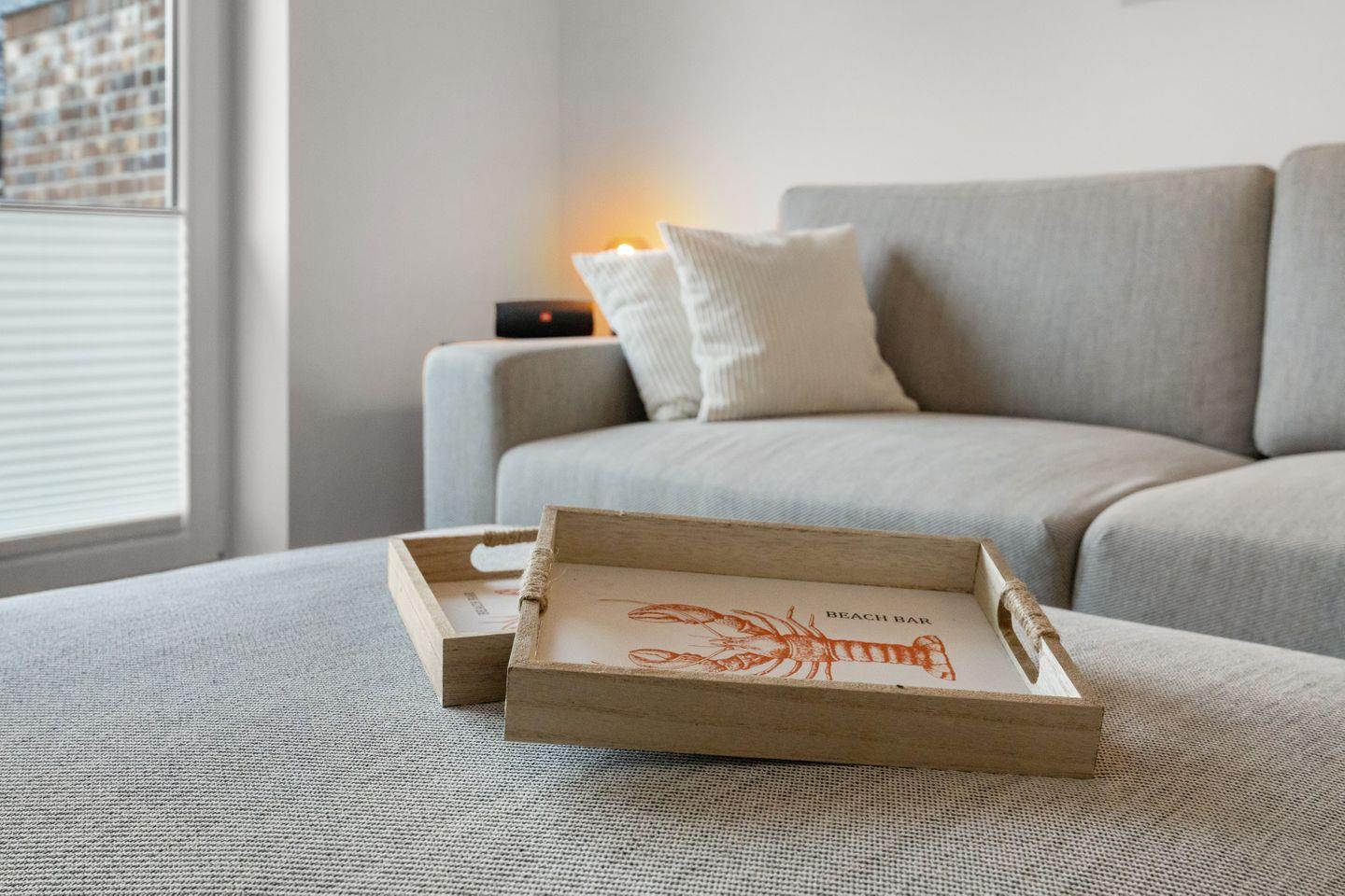 Im Erdgeschoss erwartet Sie ein helles, offen gestaltetes Wohnzimmer mit hochwertigem Vinylboden, gemütlicher Sofaecke und direktem Zugang zur Terrasse. Große Fenster schenken viel Tageslicht und bieten einen schönen Blick in den Garten. Zwei Fernseher und ein Radio garantieren Unterhaltung, während kostenloses WLAN im gesamten Haus zur Verfügung steht. Es gibt auch einen modernen Ellipsentrainer im Flur, der gerne genutzt werden kann.