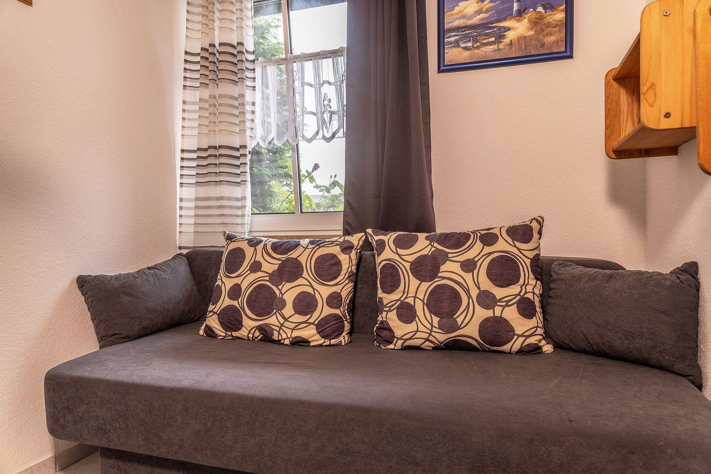 Abgetrennter Schlafbereich mit Doppelbett