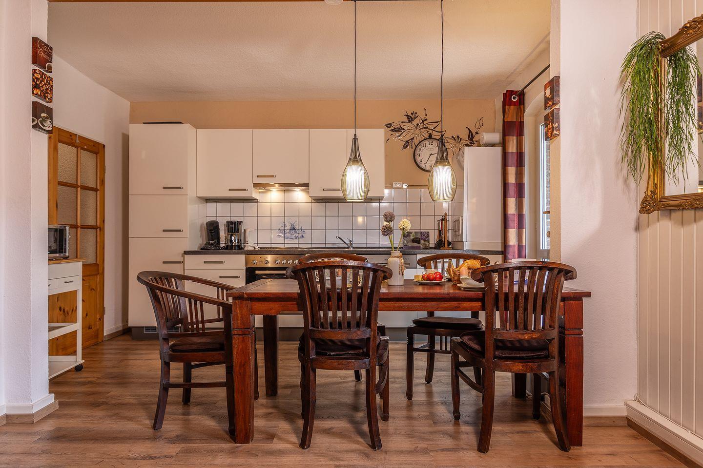 Früher Bahnhof, heute Feriendomizil: Große Ferienwohnung mit verspieltem Charakter auf ca. 110 m²: 3 Schlafzimmer, 2 Küchen, 2 Bäder und Platz für bis zu 6 Personen, überdachte Terrasse und Garten. Für alle, die Individualität und Atmosphäre schätzen!