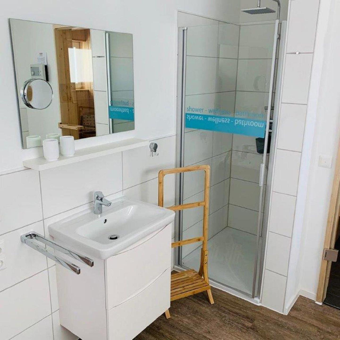 An stürmischen und/oder regnerischen Tagen wird das Badezimmer mit seiner Vollausstattung zum Wellnesstempel.