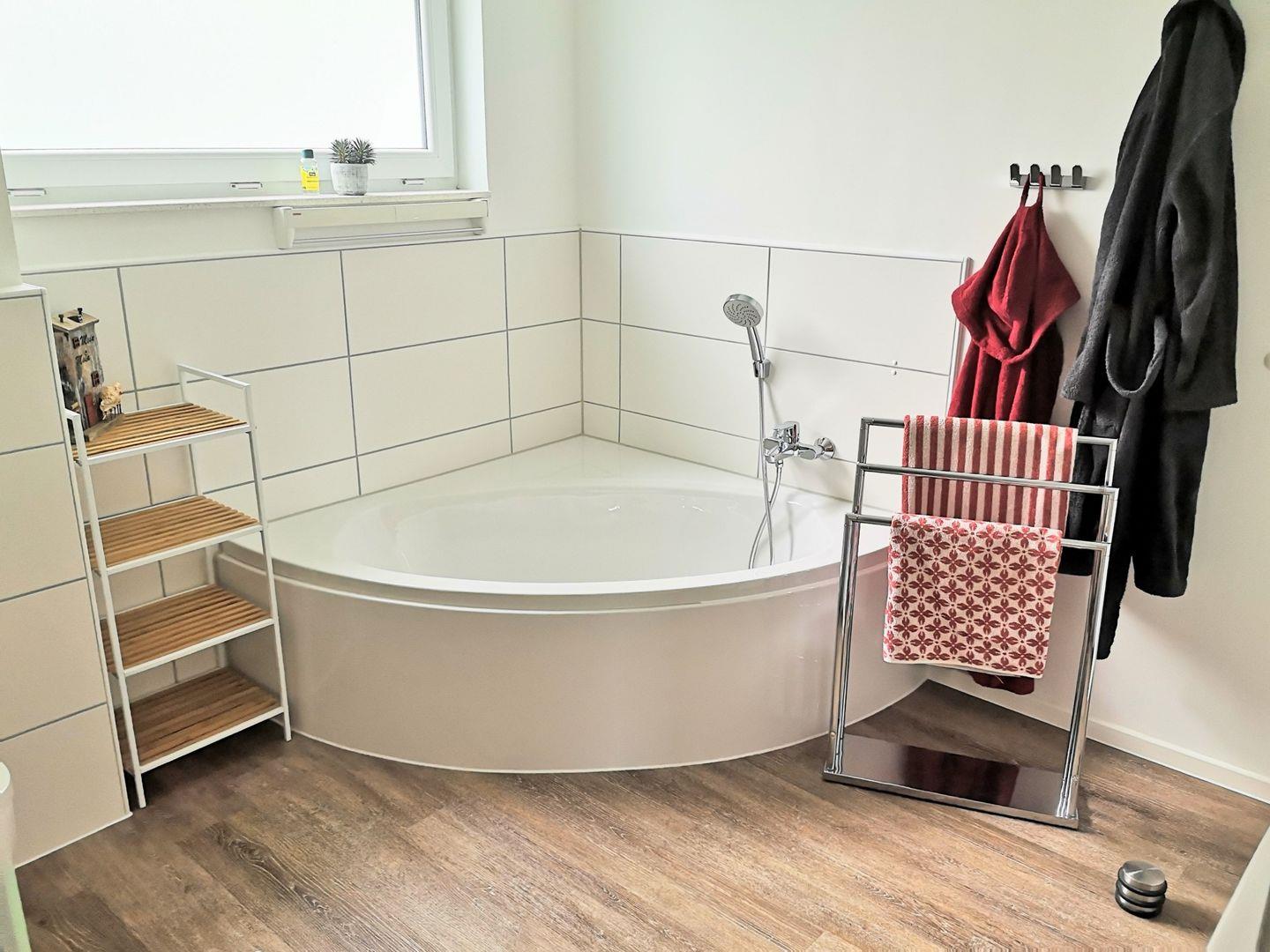 An stürmischen und/oder regnerischen Tagen wird das Badezimmer mit seiner Vollausstattung zum Wellnesstempel.