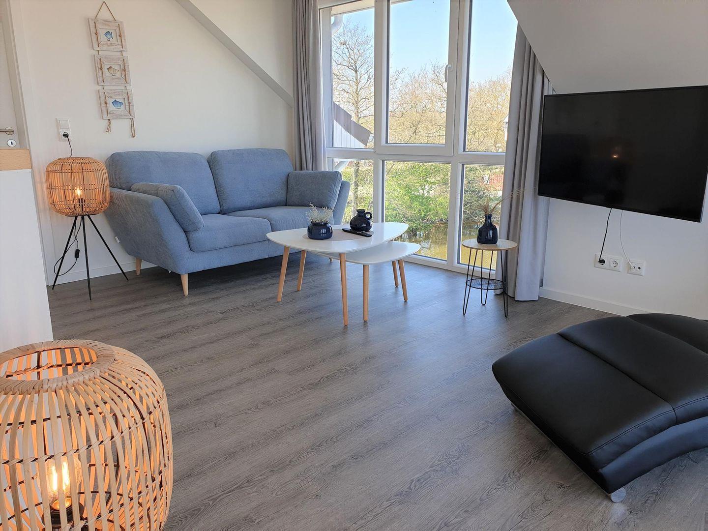 Im hinteren Bereich, zur Terrasse gelegen, steht eine gemütliche Sofaecke mit Fernseher zur Verfügung.