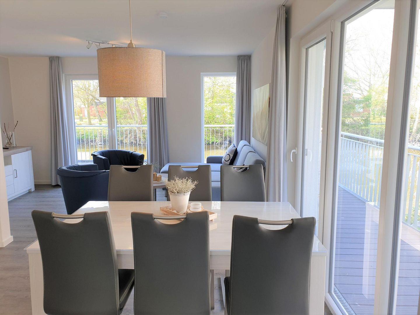 Der zentrale Punkt auf dieser Ebene wird der große Esstisch mit sechs Stühlen sein.