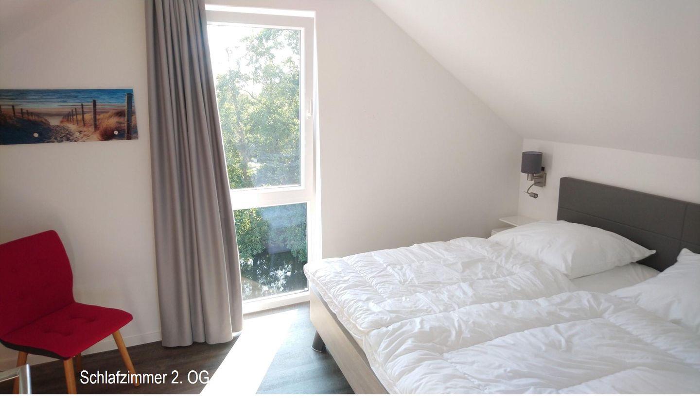 Die erste Etage bietet Ihnen neben dem Schlafzimmer mit Doppelbett, dem Kinder/Jugendzimmer mit zwei einzelnen Betten und einem Balkon, das große Bad mit moderner Regendusche, Badewanne und hauseigener Sauna.