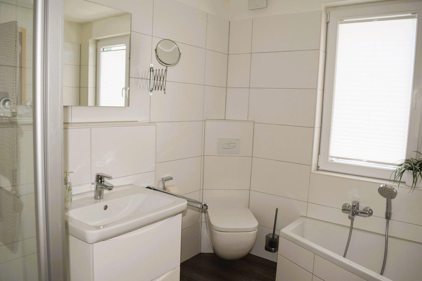 An stürmischen und/oder regnerischen Tagen kann das Badezimmer mit seiner Vollausstattung zum Wellnesstempel werden.
