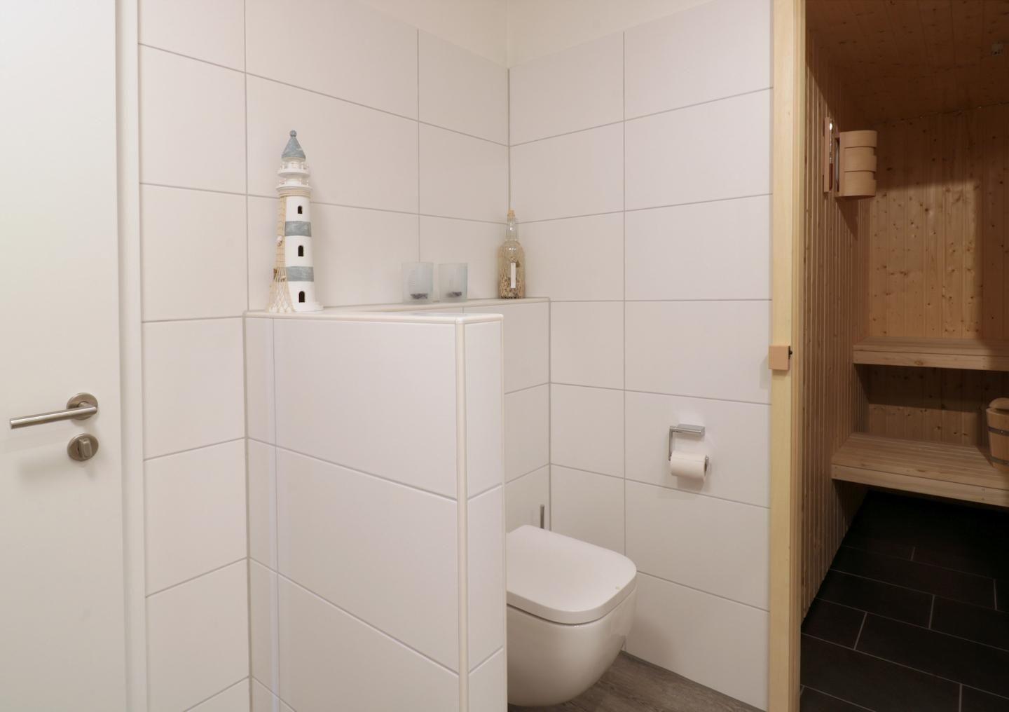 Die erste Etage bietet Ihnen neben zwei Schlafräumen, das große Bad mit moderner Dusche, Badewanne und hauseigener Sauna.