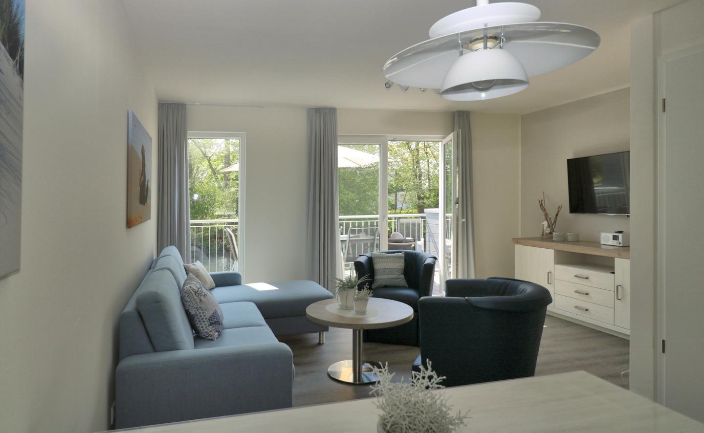 Auch hier bietet eine gemütliche Sofaecke mit Fernseher und einer Relax Liege die Möglichkeit zum Entspannen.