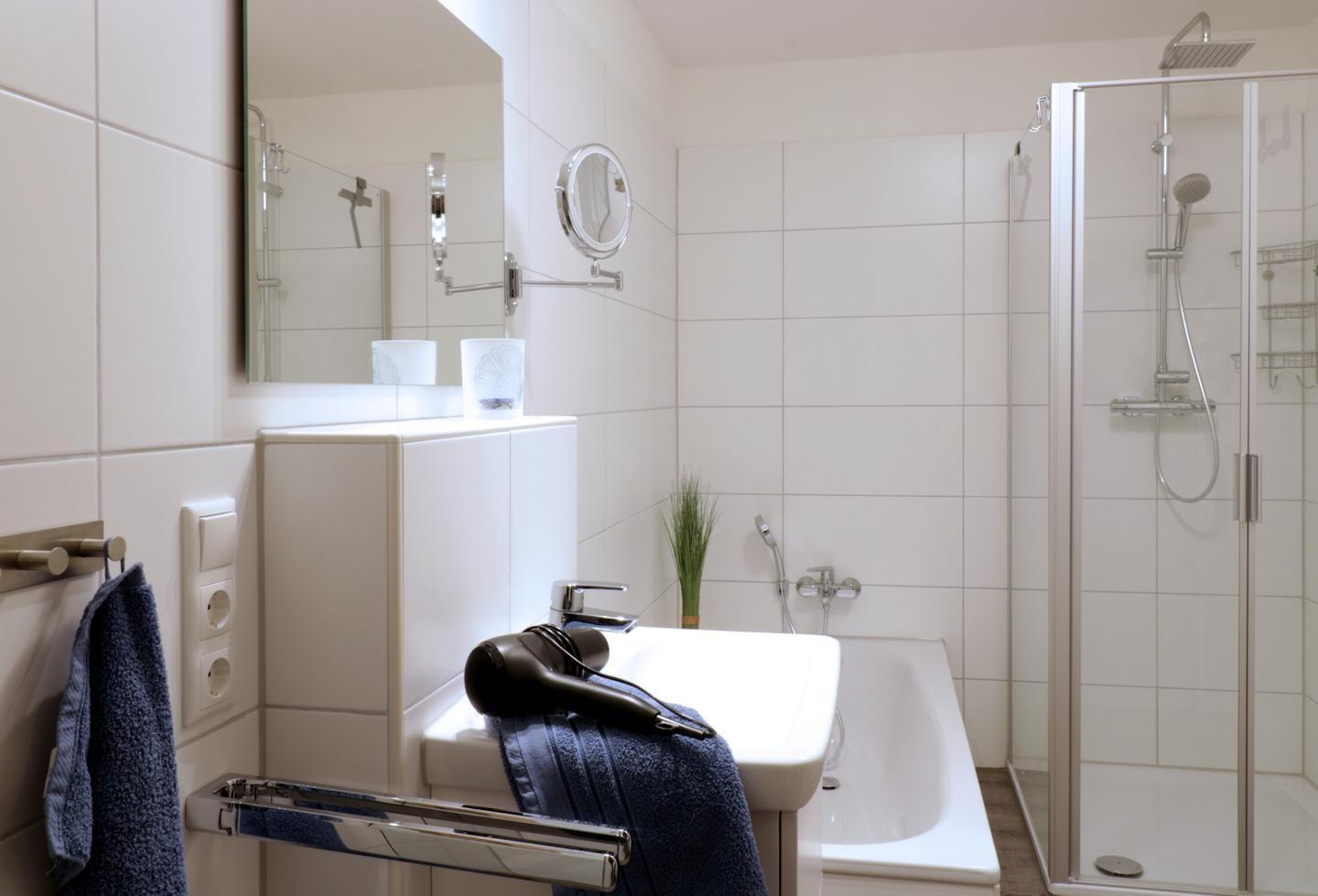 An stürmischen und/oder regnerischen Tagen kann das Badezimmer mit seiner Vollausstattung zum Wellnesstempel werden.