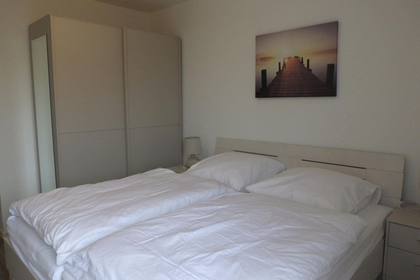In jedem Schlafzimmer steht Ihnen ein modernes Doppelbett mit Nachtkonsolen und ein Kleiderschrank zur Verfügung.
