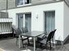 Die große, über Eck laufende Süd-Terrasse ist mit einem Tisch, sechs Sitzgelegenheiten, einem Strandkorb, sowie einem Sonnenschirm ausgestattet.