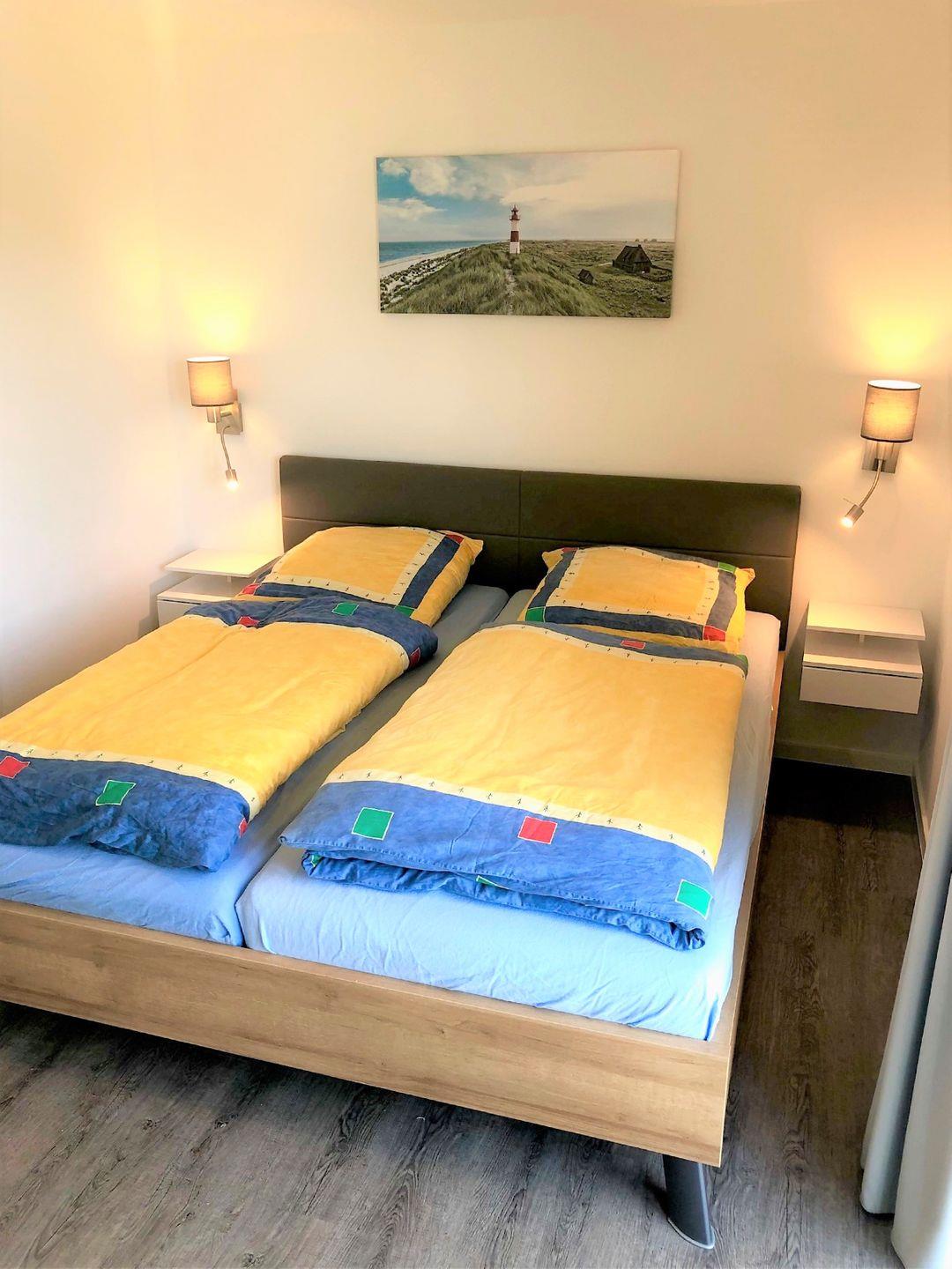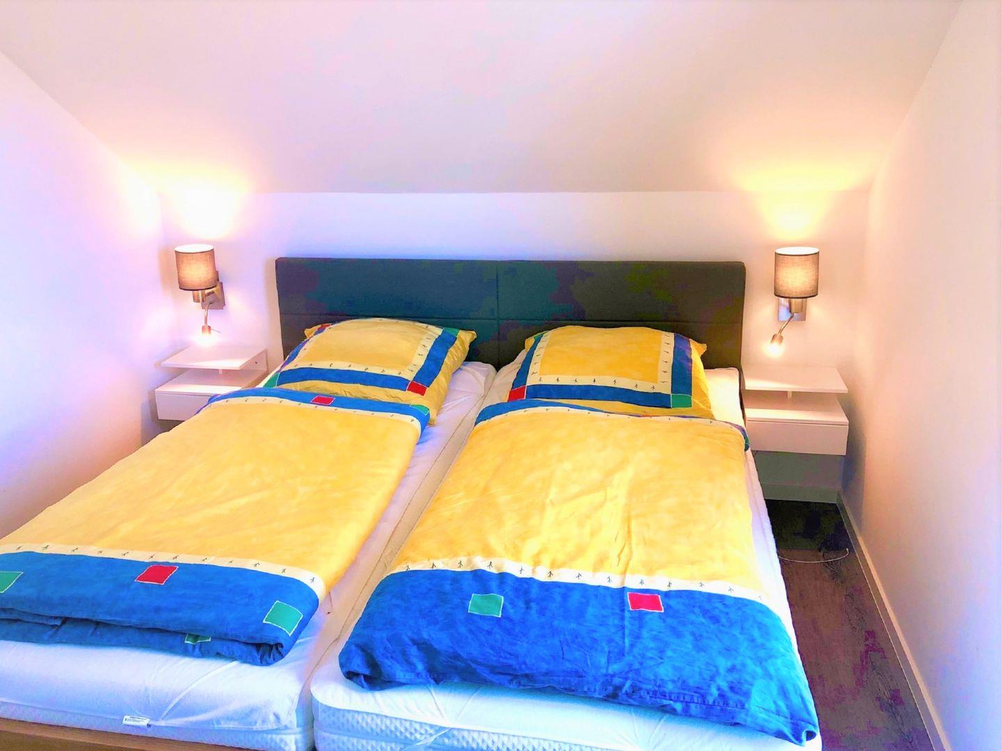 Die erste Etage bietet Ihnen neben zwei Schlafräumen, das große Bad mit Dusche, Badewanne und Dusche sowie einer hauseigenen Sauna.
