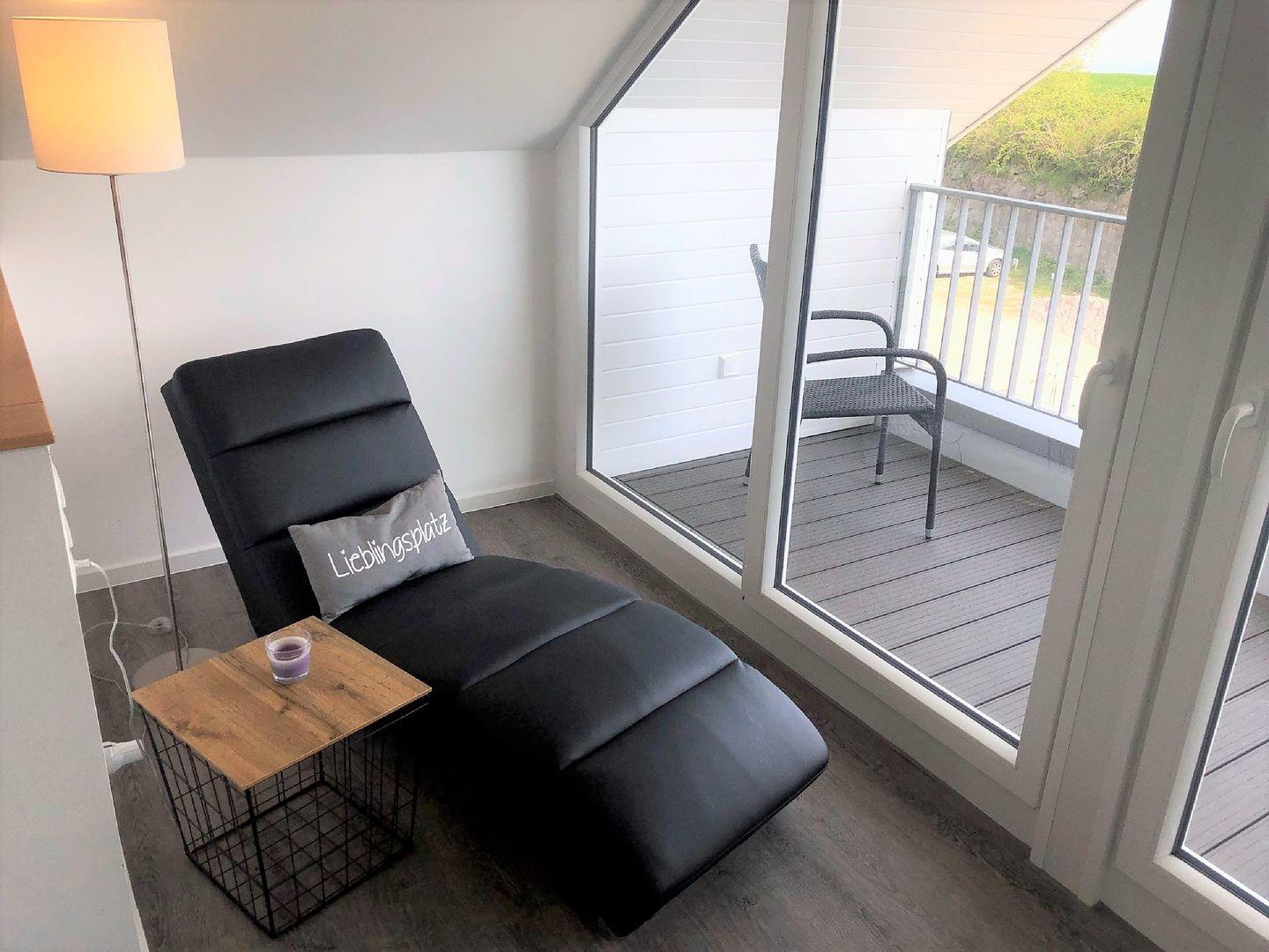 Auch hier bietet eine gemütliche Sofaecke mit Fernseher und eine Relax Liege die Möglichkeit zum Entspannen.