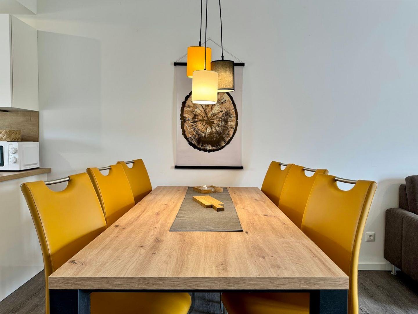 Der zentrale Punkt auf dieser Ebene ist der große Esstisch mit sechs Stühlen.