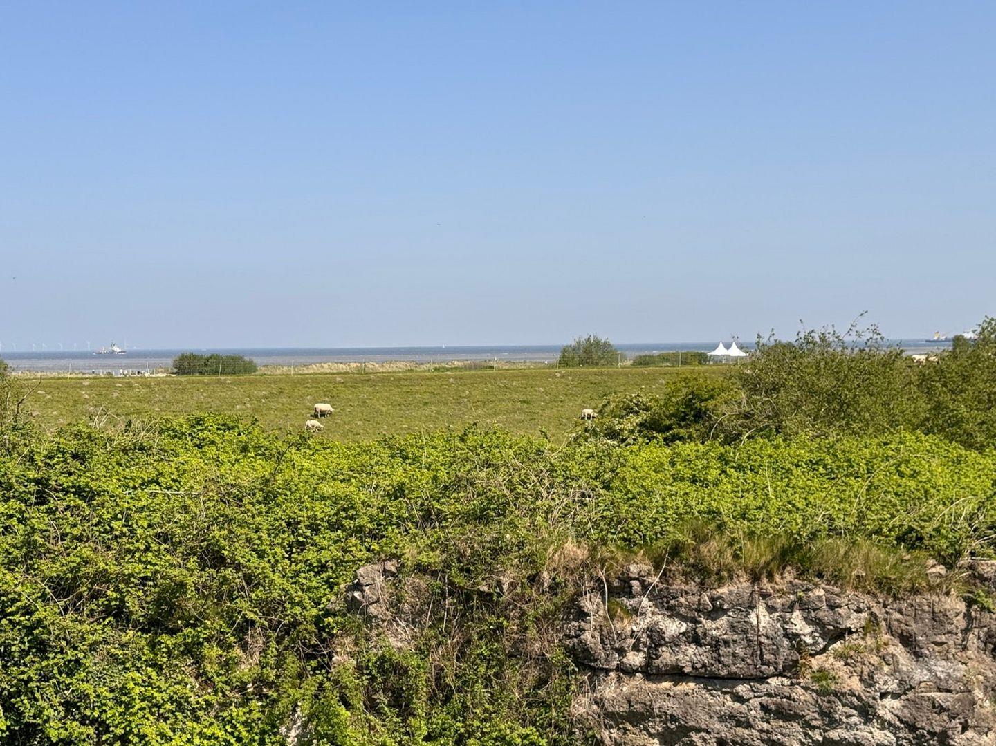 Von hier oben genießt man einen herrlichen Blick auf das Wattenmeer. ein Fernglas steht zur Verfügung.