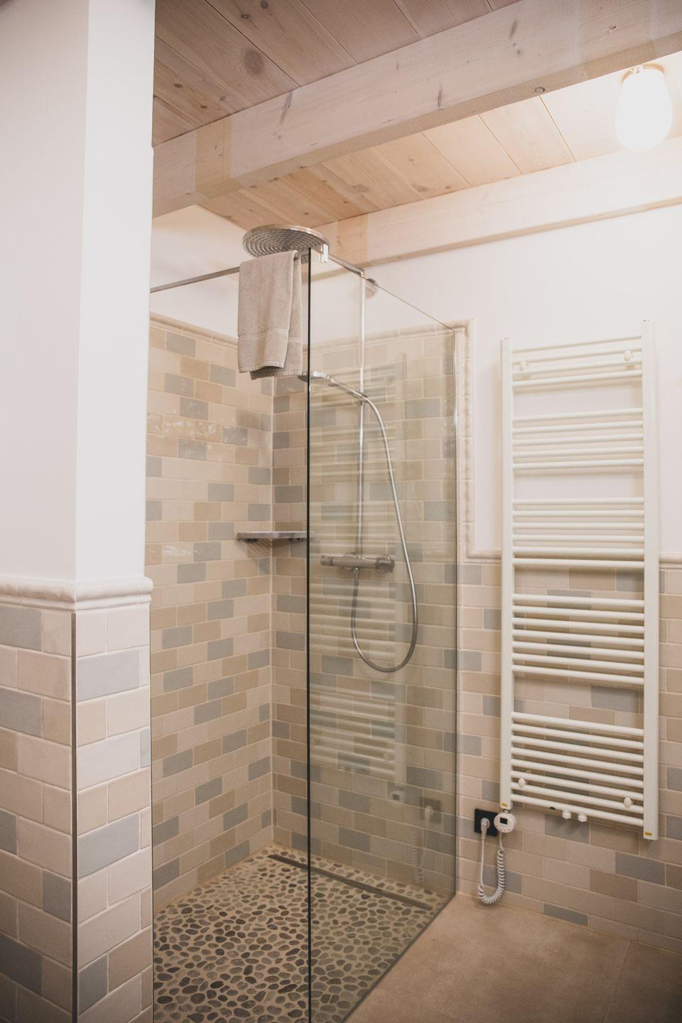 Sowohl im Erdgeschoss als auch im 1. Obergeschoss stehen geräumige Badezimmer mit Rain- Forest Dusche , WC und zusätzlicher Badewanne ím 1. OG zur Verfügung.