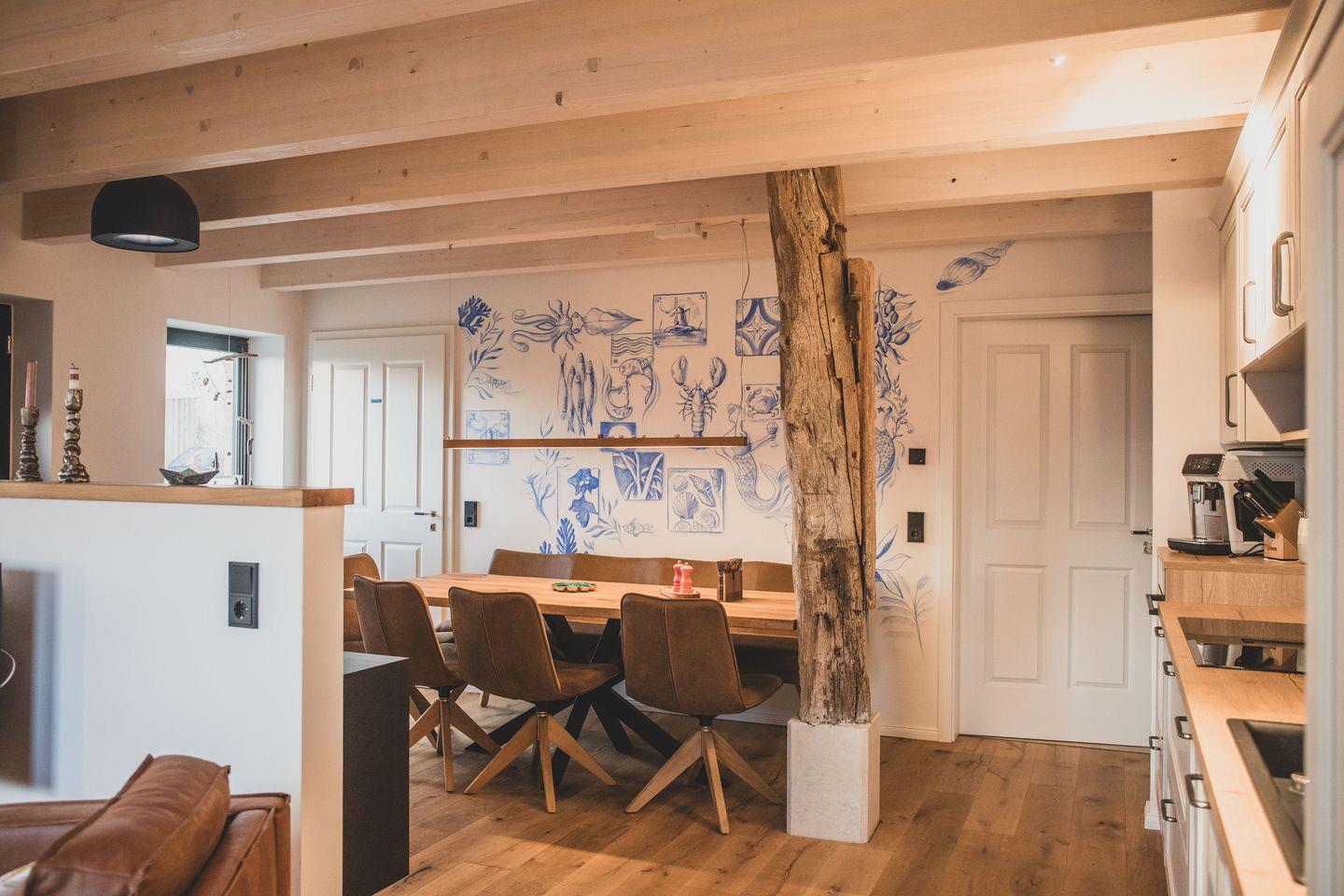 Unsere Ferienwohnung „Hinnerks Huus“ bietet Platz für bis zu 6 Personen und besticht durch die moderne offene Gestaltung des Wohn- /Essereiches sowie die wertvolle und hochwertige Ausstattung.