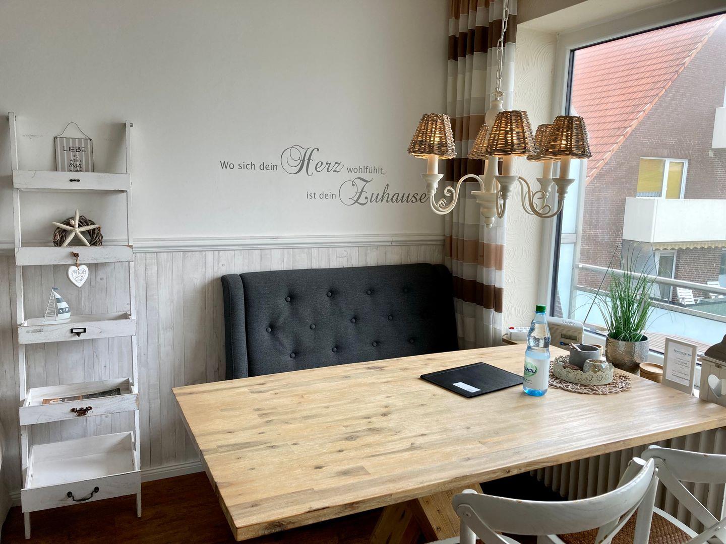 Wir haben uns viele Gedanken gemacht, wie wir Ihnen Ihre schönsten Tage im Jahr möglichst gemütlich gestalten können. Mit unserer neuen Einrichtung im maritimen Landhaus-Stil hoffen wir, dass Sie sich in unserer Wohnung willkommen und wohl fühlen. Z.B. auf dem bequemen Ess-Sofa oder im großen Doppelbett - ausgestattet mit neuen hochwertigen Matratzen.