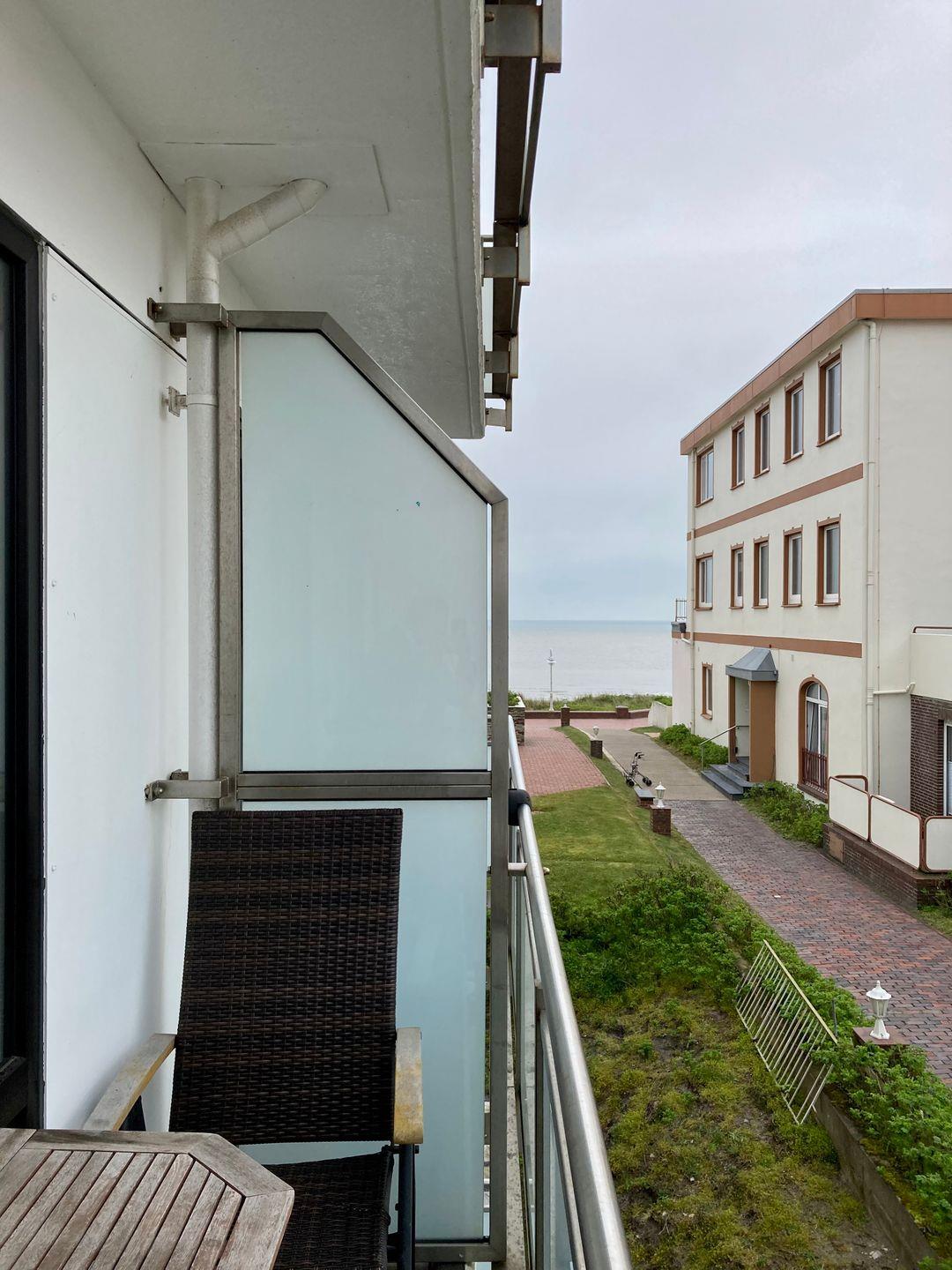 Lassen Sie sich vom Meeresrauschen wecken – denn von unserer Wohnung trennen Sie nur wenige Schritte vom traumhaften Badestrand auf Wangerooge! Vom langgestreckten Balkon – der von Schlafzimmer und Wohnzimmer begehbar ist – haben Sie eine wunderschöne seitliche Aussicht auf das Meer.