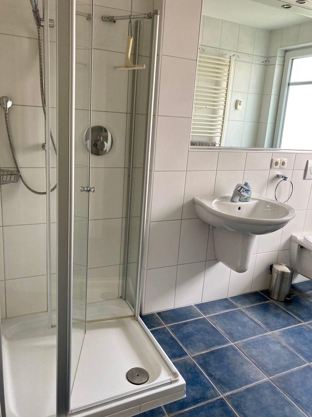 Im Badezimmer erwartet Sie eine große Spiegelfront und eine große Dusche. Für eine bessere Belüftungsmöglichkeit bietet dieses Badezimmer auch ein Fenster