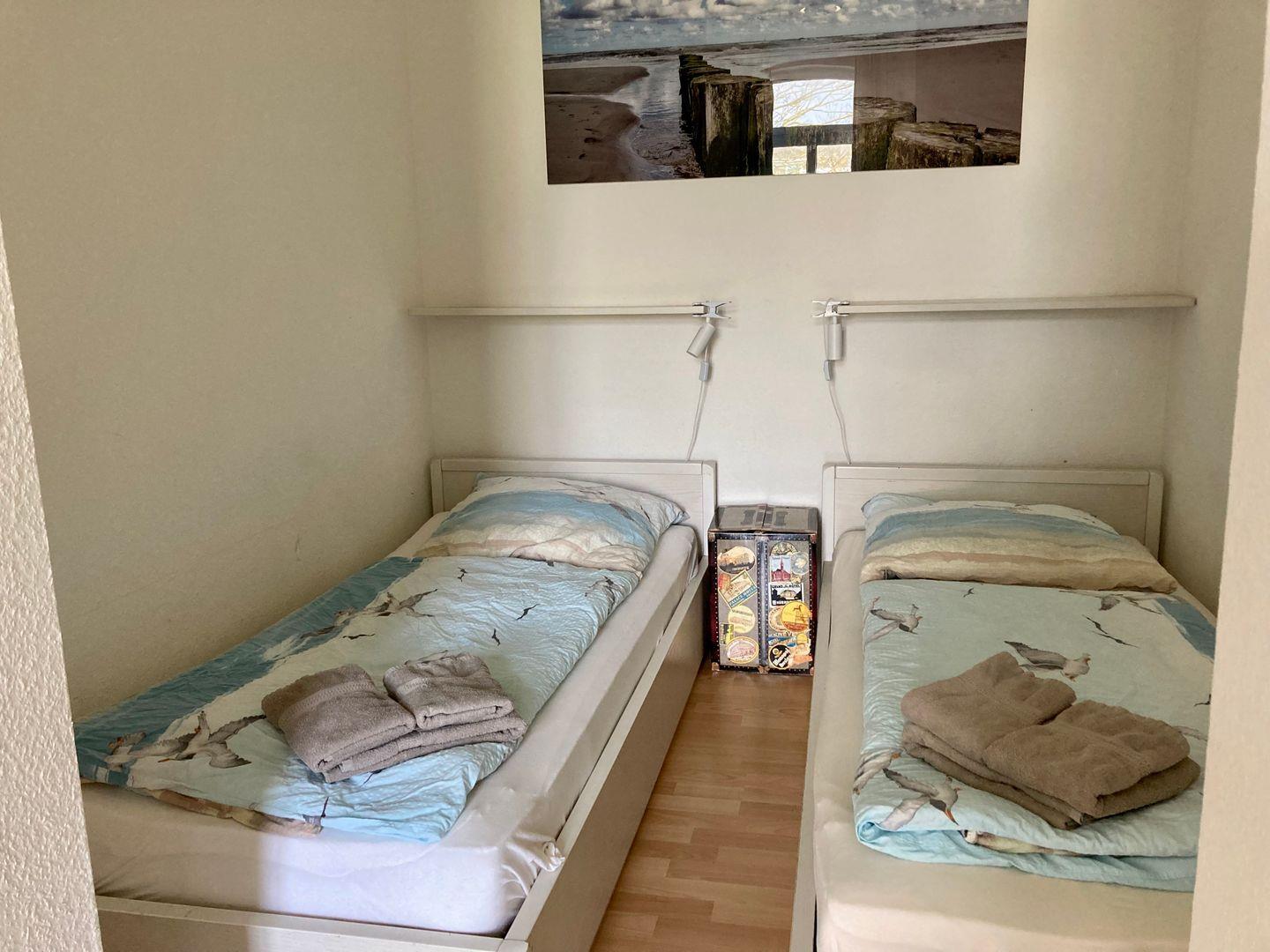 Diese modern eingerichtete Ferienwohnung bietet Ihnen ein Schlafzimmer mit Doppelbett und ein weiteres Schlafzimmer mit 2 Einzelbetten und einem Schrankbett.
