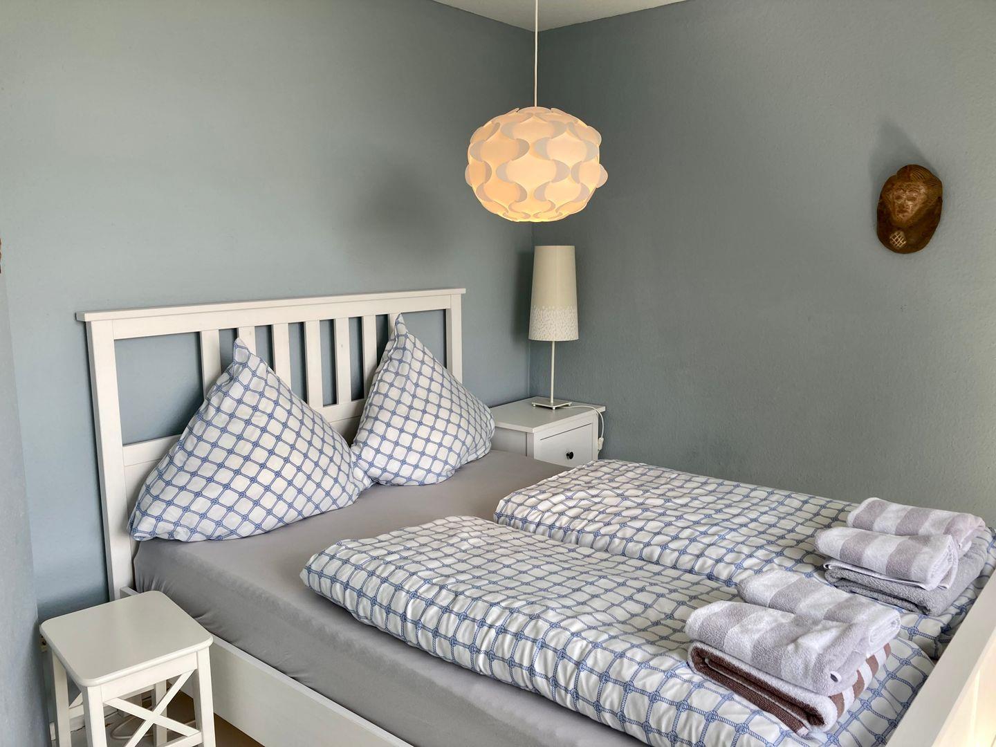 In der obersten Etage sind dann noch 2 weitere Schlafzimmer und ein Duschbad. Das eine Schlafzimmer besticht mit seinem Ausblick aufs Watt, während man bei dem anderen Schlafzimmer unseren Alten Leuchtturm bewundern kann.