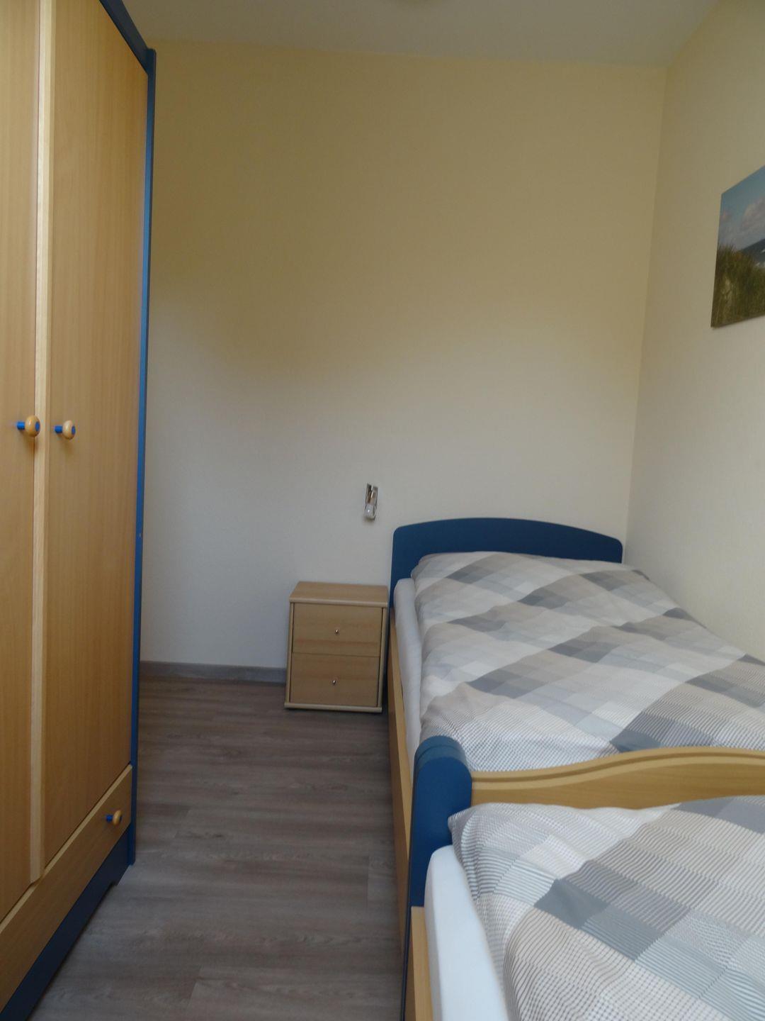 In der unteren Ebene der Wohnung befindet sich auch das "Elternschlafzimmer" mit einem Doppelbett. In der oberen Etage verfügen die 2 Schlafzimmer jeweils über 2 Einzelbetten.