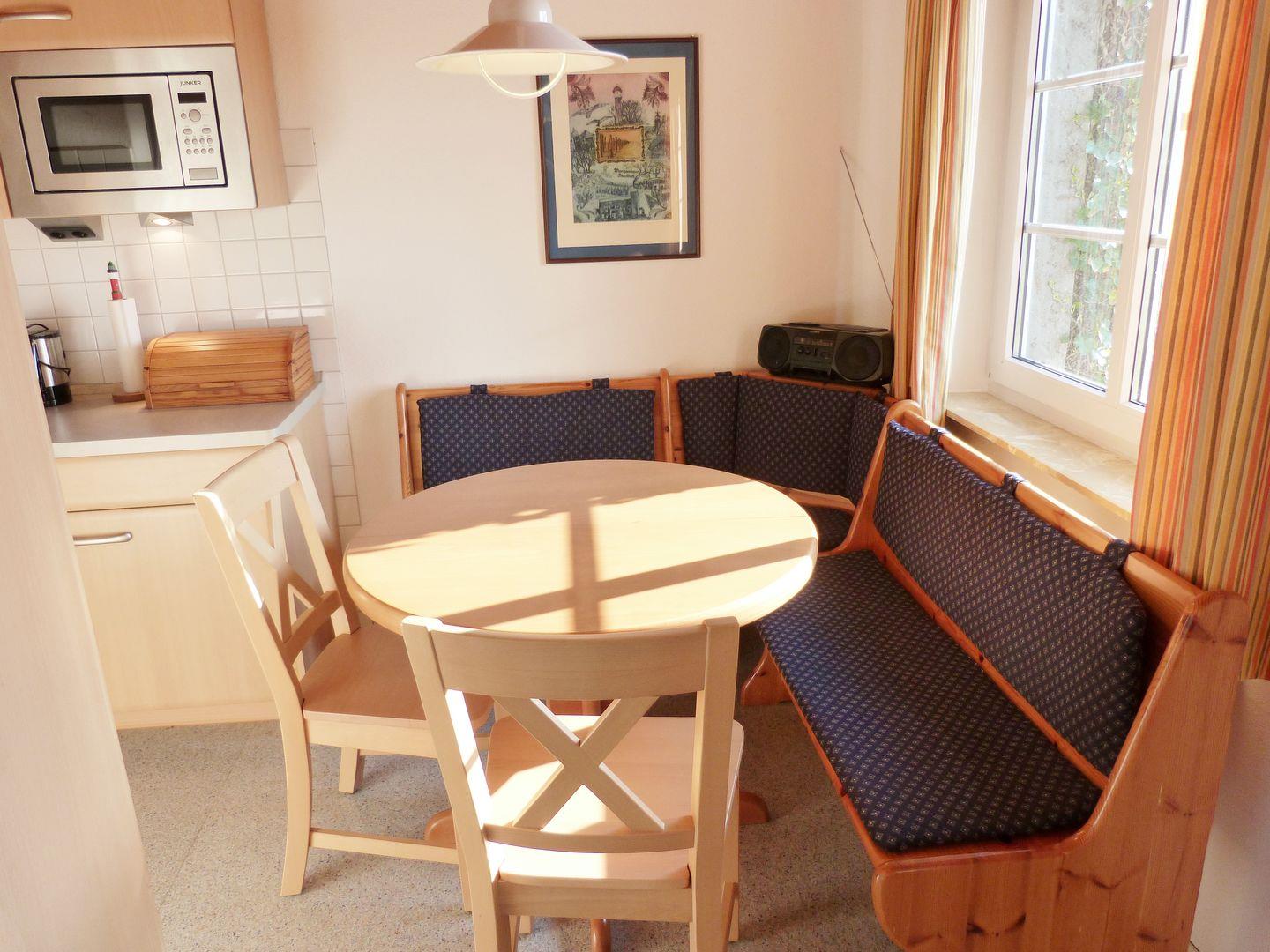 Die Ferienwohnung verfügt über ein gemütliches Wohnzimmer mit LED-TV, Internetzugang (WLAN), Kuschelsofa und Sessel. Die Küche ist komplett ausgestattet mit einem 4-Platten-Ceranfeldherd, Geschirrspülmaschine, Mikrowellle, Kühlschrank mit Gefrierfach, Kaffeemaschine, Wasserkocher und Toaster. Die Sitzecke macht die Küche zur Wohnküche. Die zwei Schlafzimmer sind mit einem Doppelbett bzw. mit zwei Einzelbetten ausgestattet.