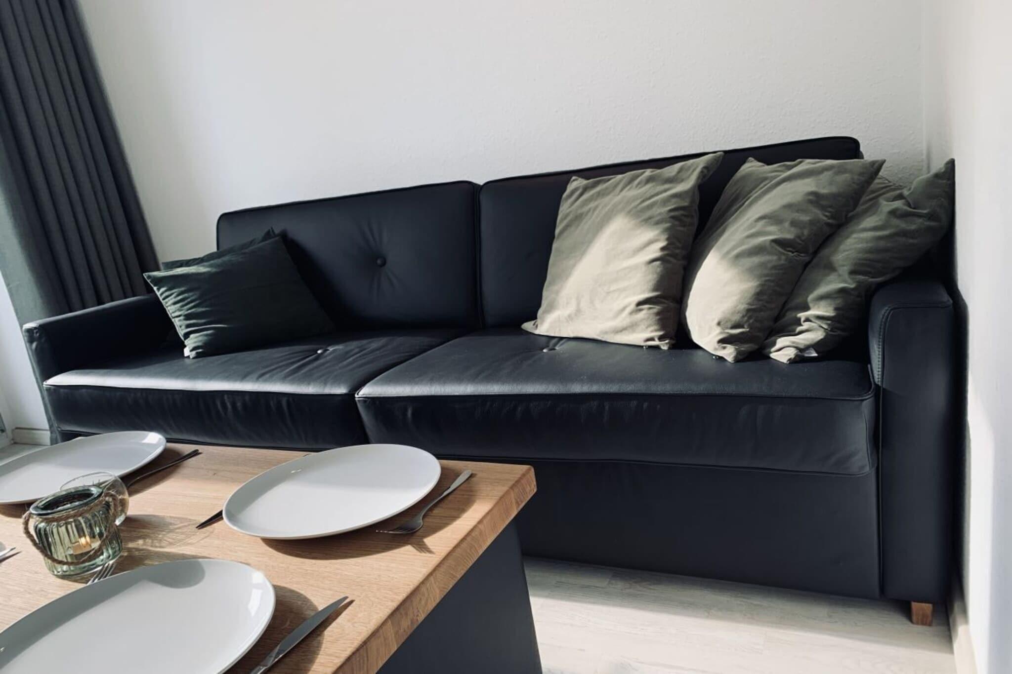 Unsere neu renovierte Ferienwohnung empfängt Sie in bester Lage direkt am Meer. Auf kleinem Raum wurde an wirklich alles gedacht, um einen Wohlfühlurlaub zu viert verbringen zu können. In der praktische Küche finden Sie natürlich alles, um sich auch mal selbst verpflegen zu können. Darüber hinaus bietet diese Ferienwohnung ein separates Schlafzimmer, mit einem Etagenbett, ein geräumiges Badezimmer mit Dusche, sowie einen gemütlichen Wohn- Essbereich, der RuckZuck zu einem Schlafzimmer mit bequemen Doppelbett umbaubar ist. Wir freuen uns auf Sie!
