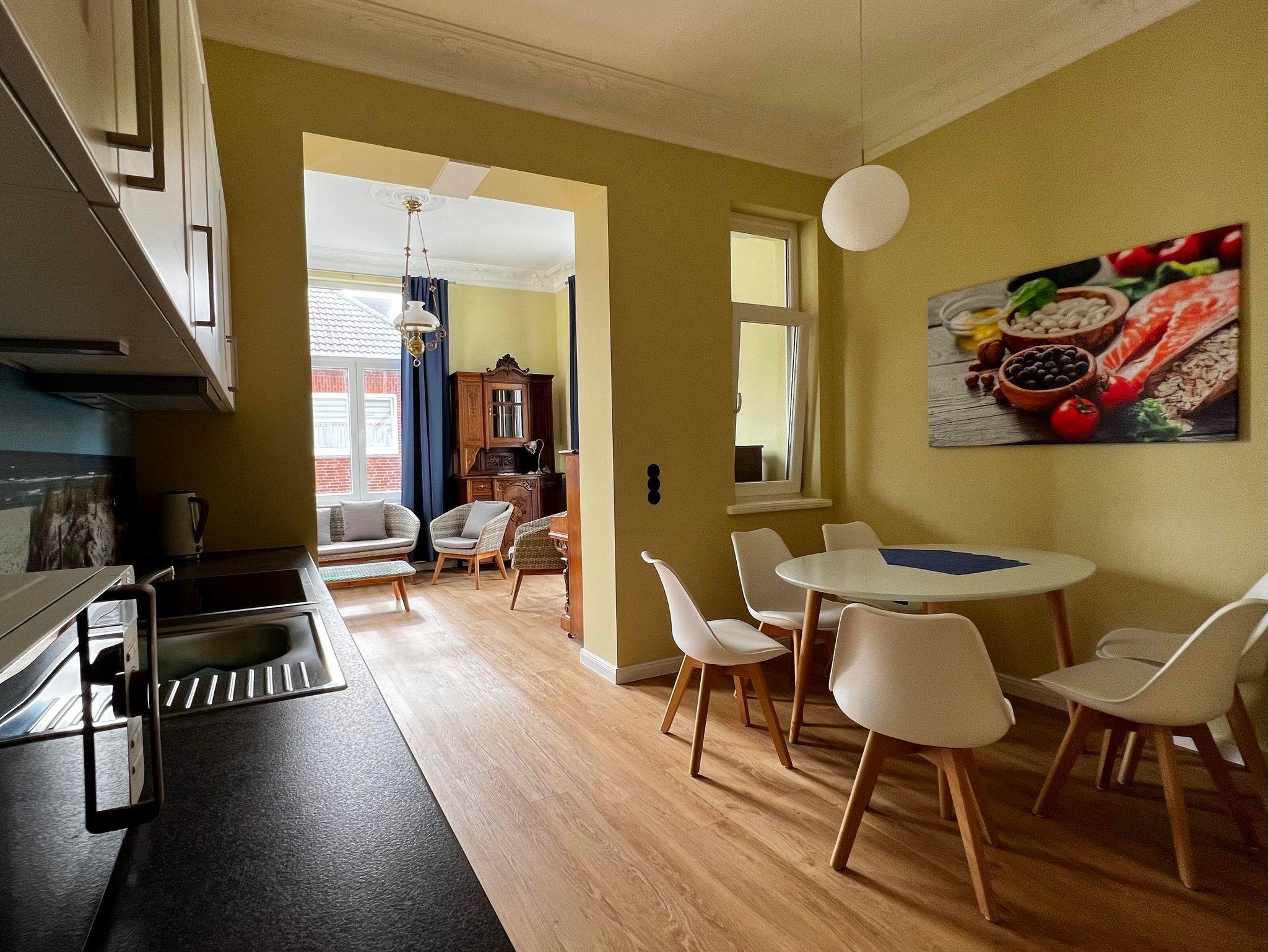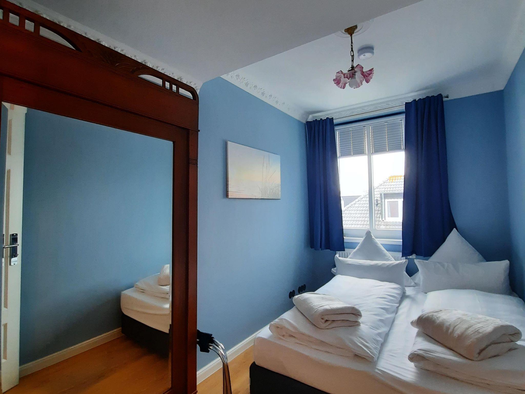 Die Architektur sowie die hochwertigen, restaurierten Möbel aus der Zeit der Jahrhundertwende vermitteln ein reizvolles Jugendstil-Ambiente, was es so auf der Insel kein zweites Mail gibt. Gleichzeitig ermöglicht Ihnen eine moderne technische Ausstattung, Ihren Alltag in gewohntem, zeitgemäßem Komfort zu führen. In den Betten, für die wir eine hochwertige Hotel-Qualität gewählt haben, werden Sie erholsamen Schlaf finden. Die Wohnung Silbermöwe verfügt über einen Erker mit Blick zum Meer und weitem Blick über die Ortsstraße sowie eine Südterrasse.