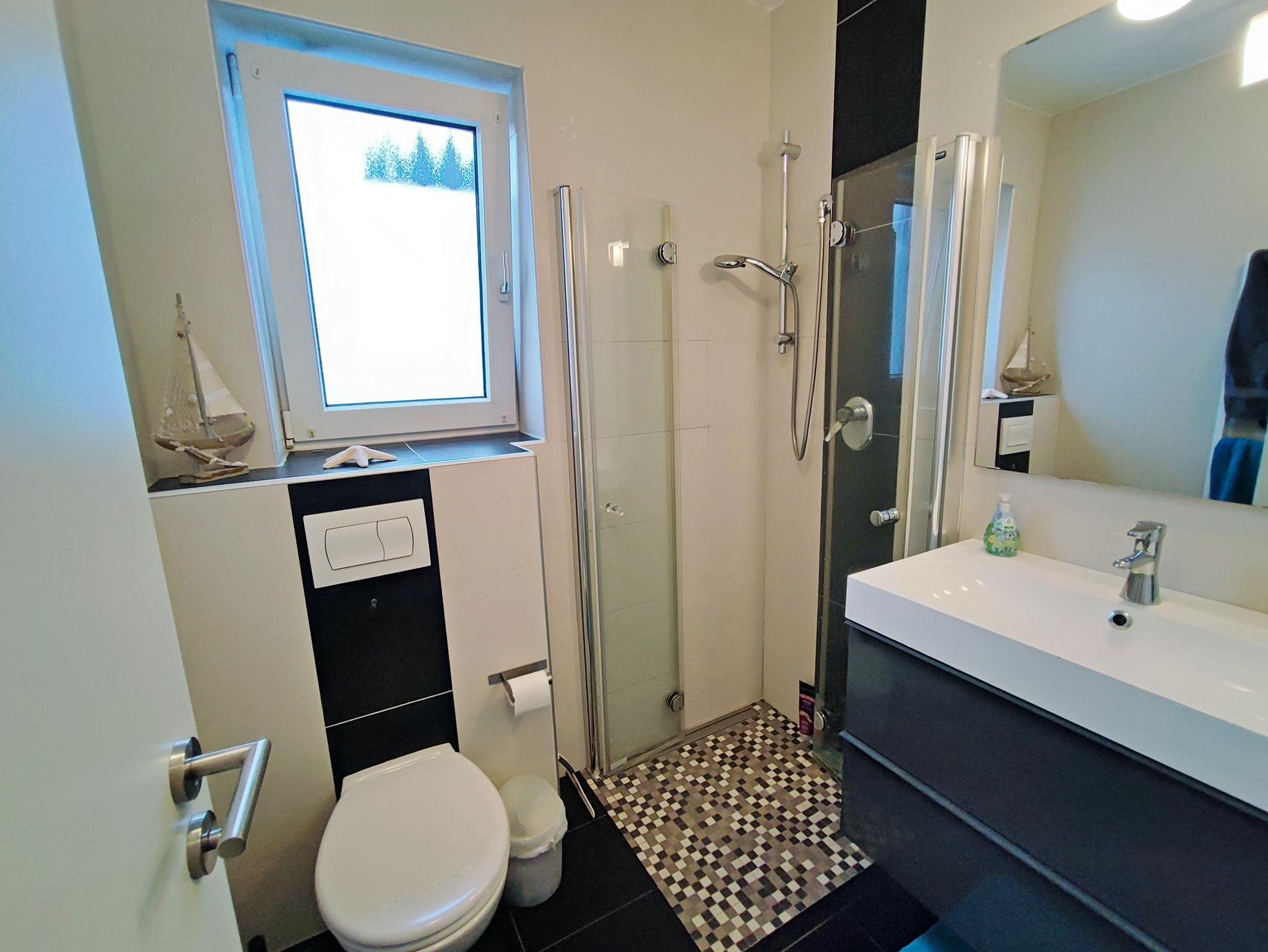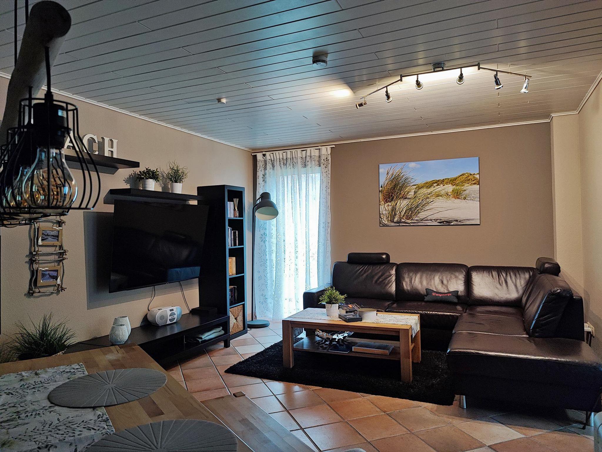 Moderne FeWo für bis zu 5 Personen. 47 Flachbild-Sat-TV, Radio/CD-Player, 1 Schlafzimmer Doppelbett (180x200 cm), 1 Kinderzimmer mit stabilem Etagenbett (unten: 140x200 cm, oben: 90x200 cm). Ledercouch, bodengleiches Duschbad mit faltbaren Glas-Seitenwänden, fahrbarer Bade-/WC-Stuhl auf Anfrage und Verfügbarkeit. Babybett und Hochstuhl, separate große Küche mit Backofen und Geschirrspülmaschine, umfangreiche Küchenausstattung; Tresor; Terrasse, Sitzmöbel f. 6 Personen; Erstausstattung Wäschepaket.