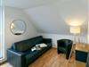 Herrlich relaxen können Sie auch im gemütlichen Wohnzimmer der Ferienwohnung, das u.a. mit einer Couch und einem TV eingerichtet ist.
