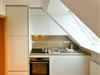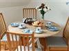 Die moderne Einbauküche - u.a. mit Herd und Backofen, Kühlschrank, Kaffeemaschine, Wasserkocher und Toaster - ermöglicht eine bequeme Selbstverpflegung. Auch ein Esstisch für gemeinsame Mahlzeiten mit der ganzen Familie ist vorhanden.