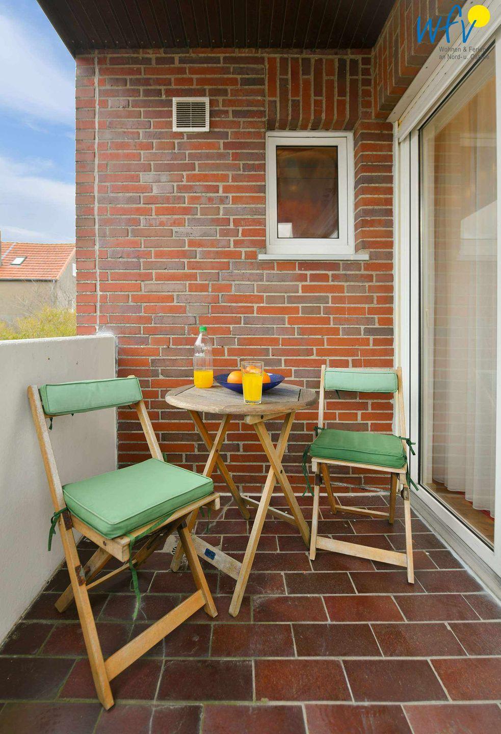 Für zusätzlichen Wohnkomfort sorgt der möblierte überdachte Balkon der Wangerooger Ferienwohnung! Hier können Sie wunderbar relaxen, einen spannenden Urlaubskrimi lesen oder einfach nur die frische Meeresluft genießen! Sie haben einen schönen Blick auf die umliegenden Nachbarhäuser und auch die Nordsee ist schon zu sehen!