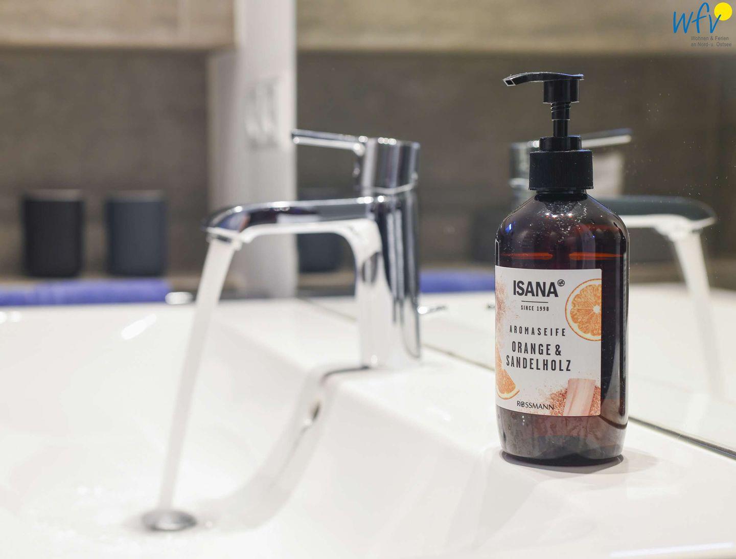 Wohnkomfort erwartet Sie auch im Bad der Ferienwohnung: Eine elegante und moderne Ausstattung - u.a. mit Glasdusche und Fußbodenheizung - sorgt für ein wunderbares Wohlgefühl!