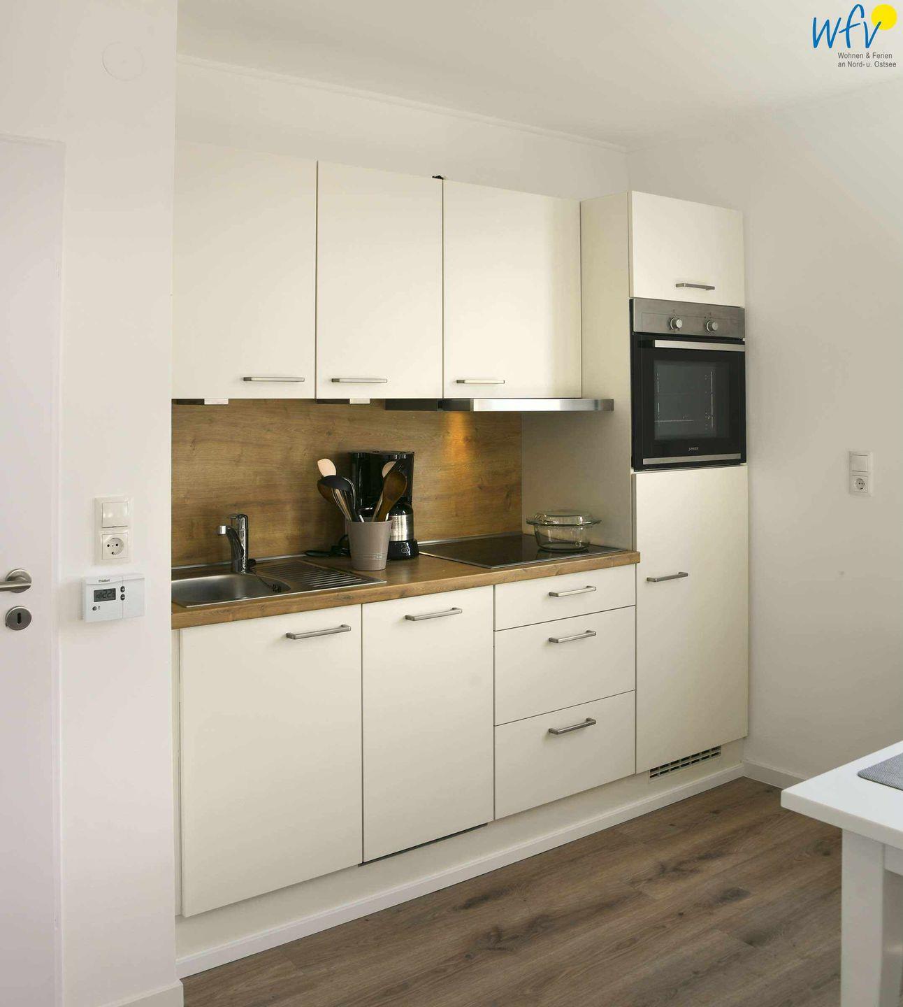 Der mit Couch, TV und HiFi-Anlage ausgestattete Wohnraum lädt zu herrlichen Stunden zum Relaxen ein. Hier entspannt zusammenzusitzen, einen guten Film zu schauen oder Tischspiele zu spielen sind unvergessliche Urlaubsmomente! In der integrierten Küche mit Essplatz können Sie auch wunderbar zusammen kochen! Es stehen Ihnen u.a. ein Ceran-Herd mit Backofen, ein Kühlschrank, eine Mikrowelle und ein Geschirrspüler sowie eine Kaffeemaschine, ein Wasserkocher, ein Toaster, ein Mixer und ein Eierkocher zur Verfügung.