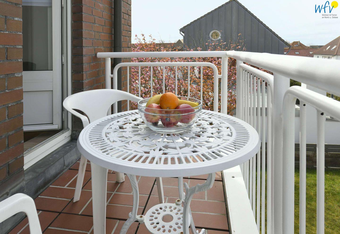 Nach dem Strandtag kommen Sie weiterhin in den Genuss von frischer Nordseeluft: zu der Ferienwohnung gehören ein möblierter Balkon und ein Gemeinschaftsgarten. In Ruhe eine gutes Buch zu lesen, sich durch den Tag zu träumen oder die Aussicht auf den Leuchtturm zu genießen bietet 100% Erholung!