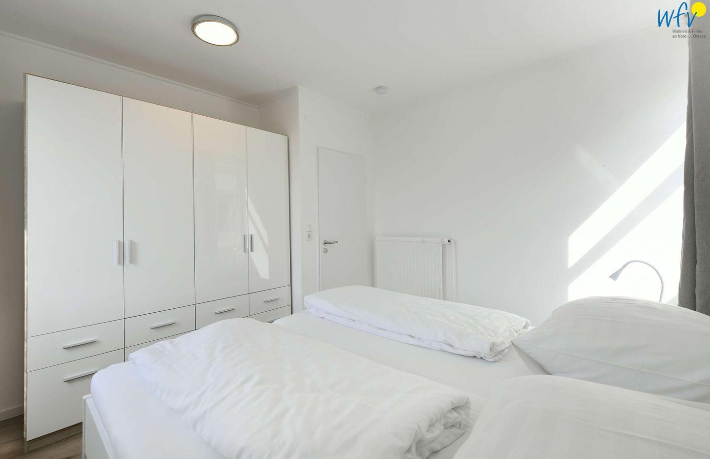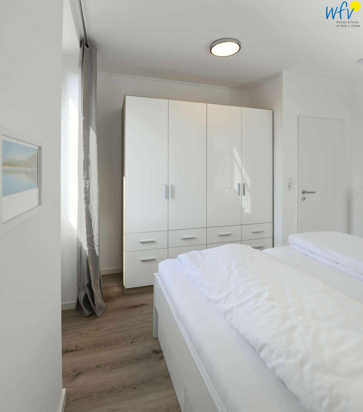 Das separate Schlafzimmer der Ferienwohnung auf Wangerooge ist mit einem bequemen Doppelbett ( 1,70m ) ausgestattet. Ihre Urlaubsgarderobe findet Platz im Kleiderschrank. Für eine angenehme Nachtruhe bestehen gute Verdunkelungsmöglichkeiten.