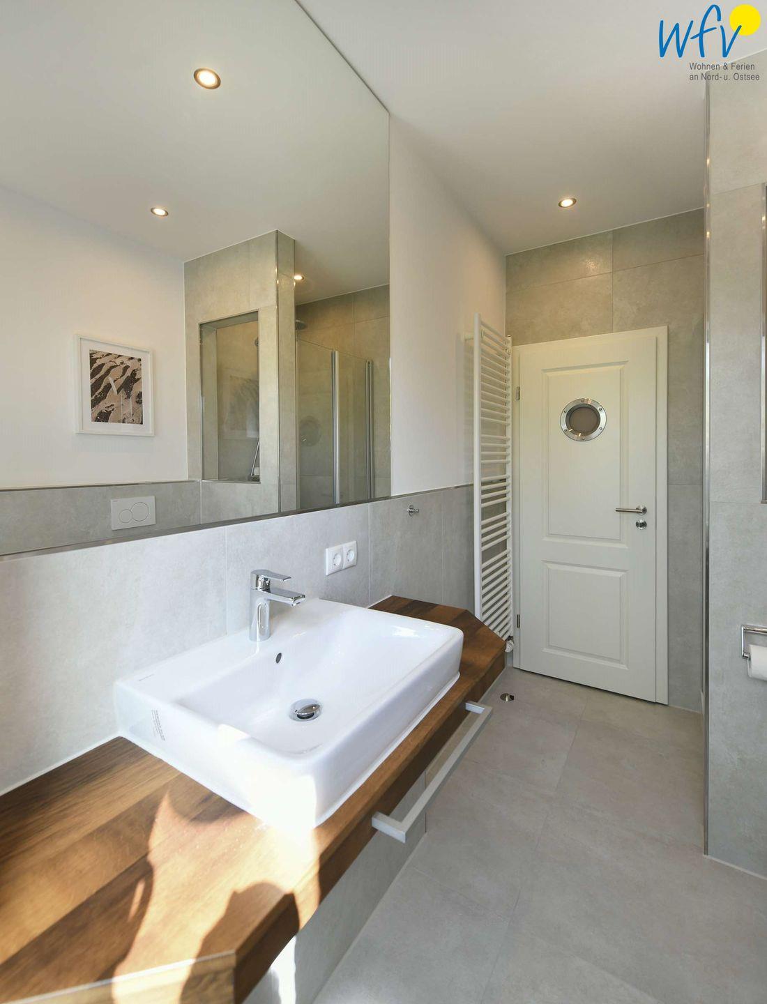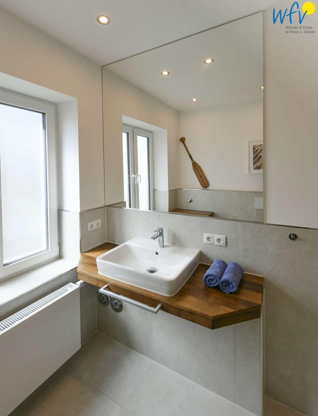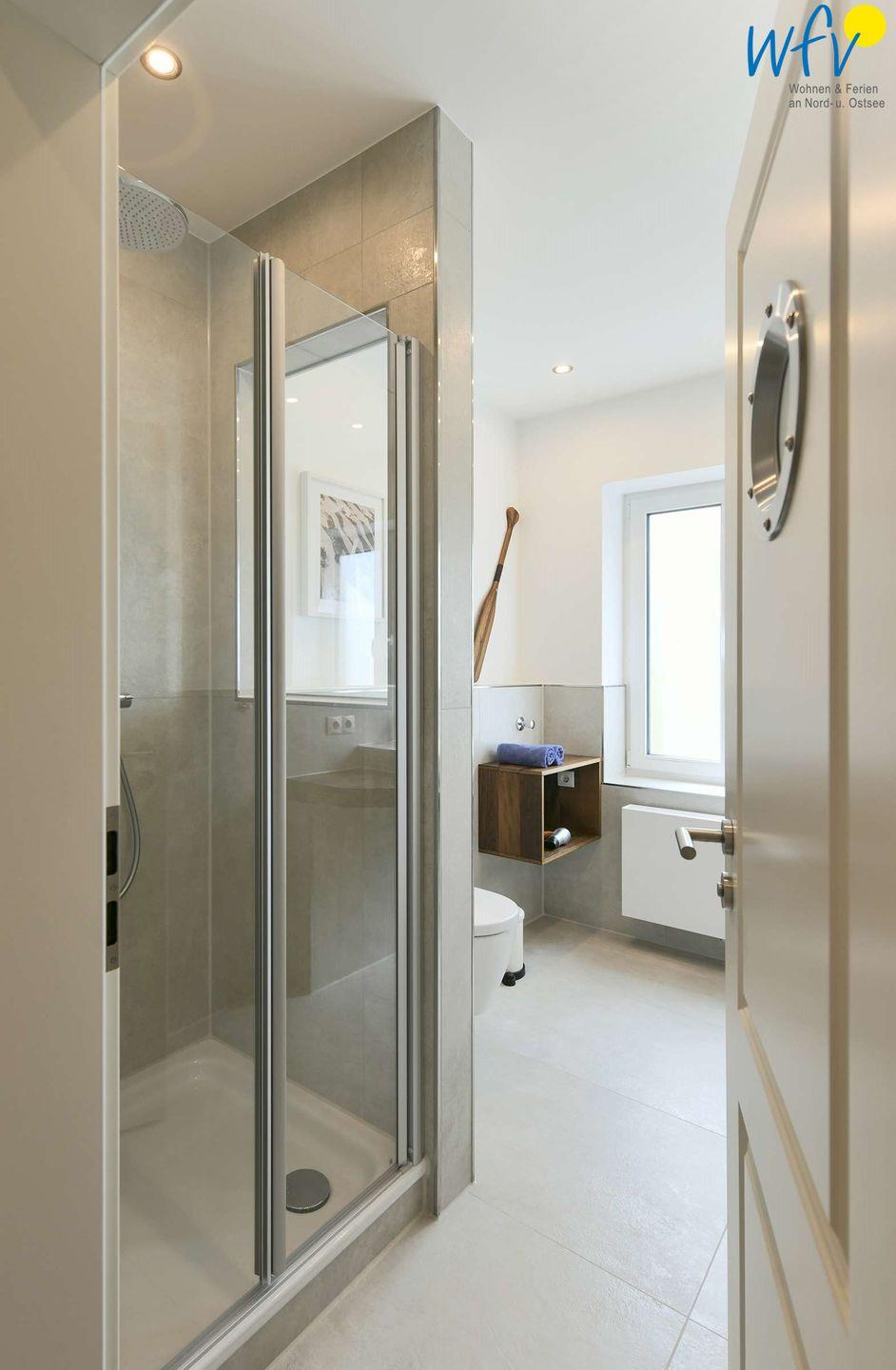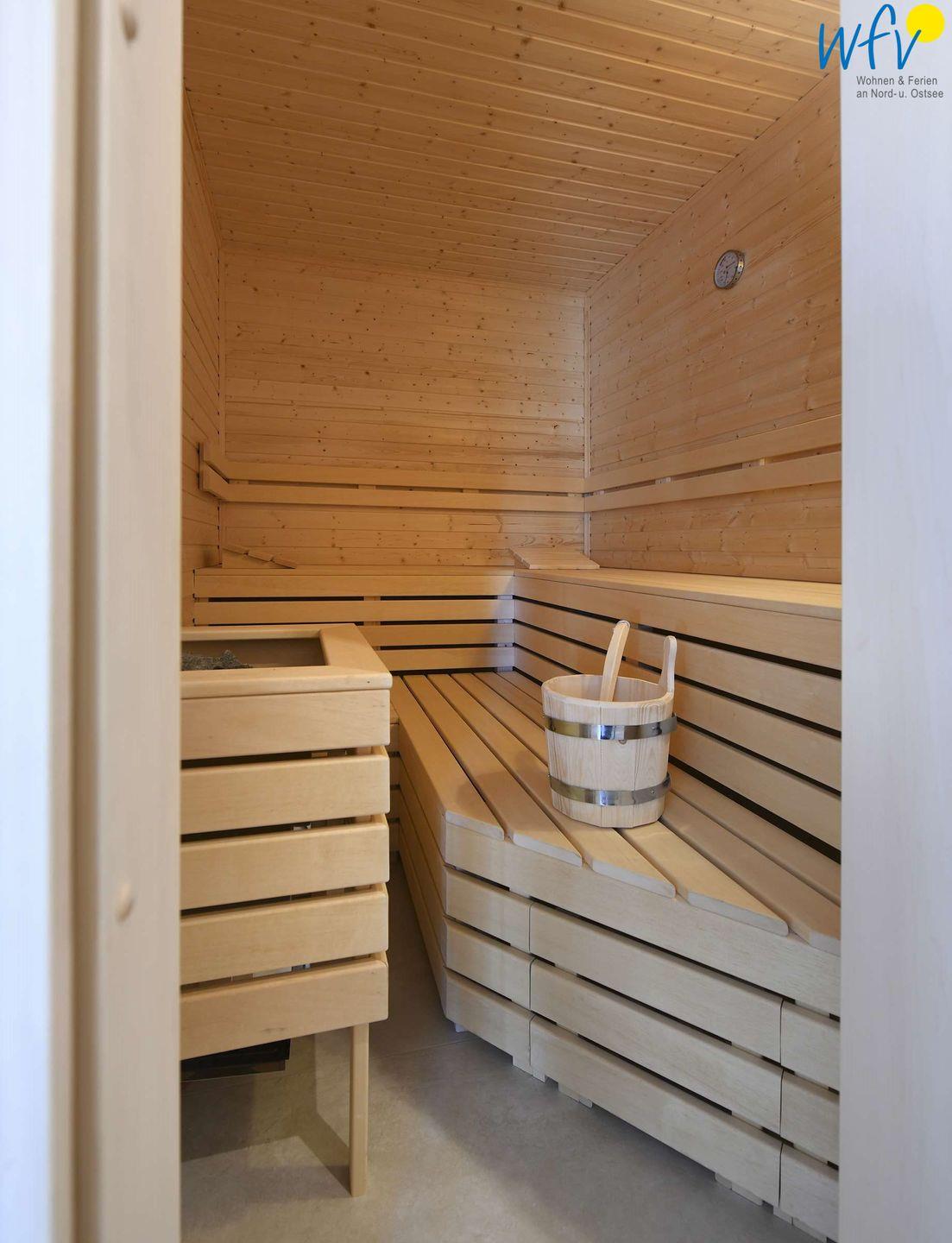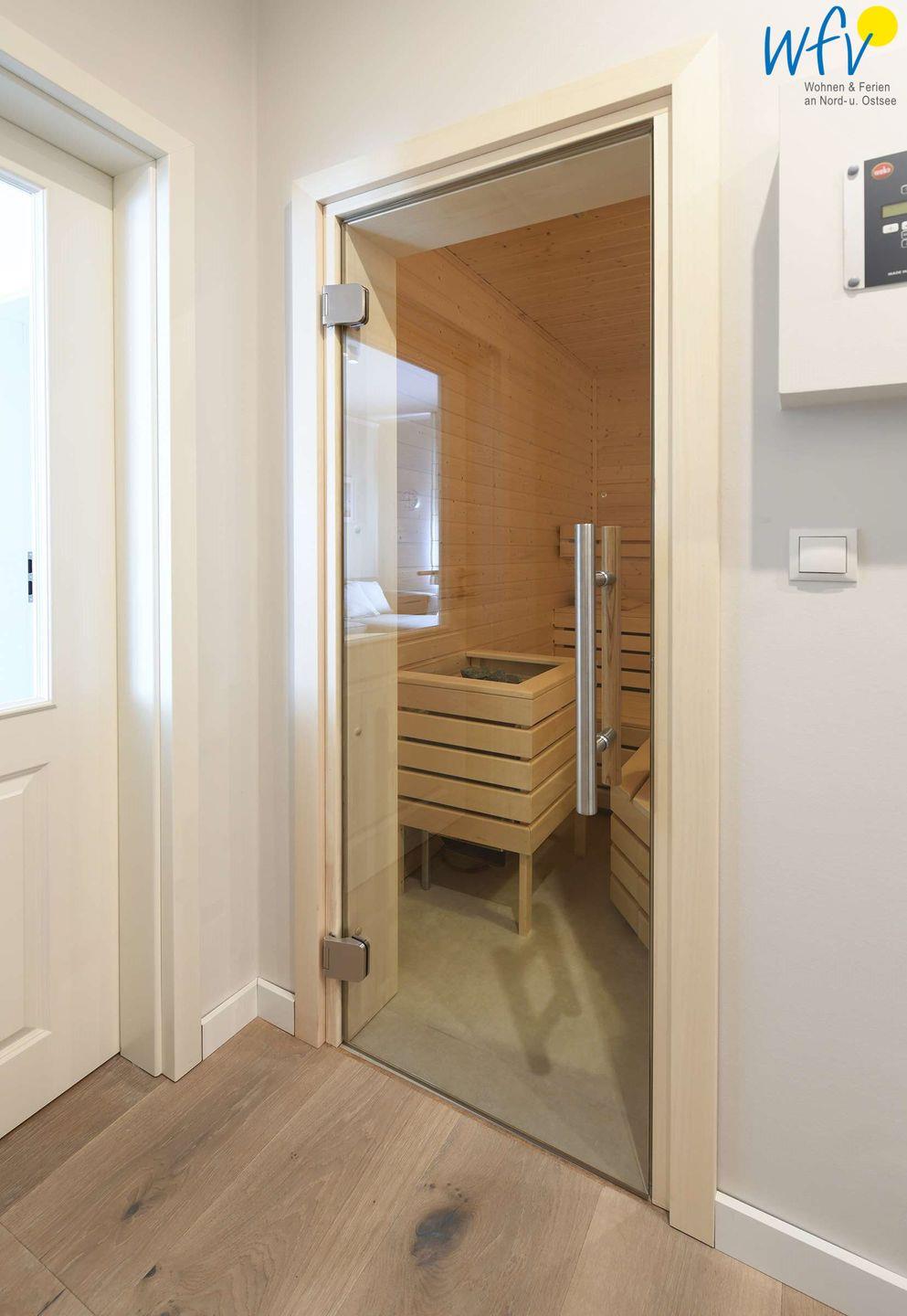Sie freuen sich auf eine Verwöhnzeit nach dem ausgiebigen Strandspaziergang? Hoher Wohnkomfort erwartet Sie auch in dem modernen Badezimmer mit Dusche, Handtuchheizkörper und Tageslicht! Die maßangefertigte Sauna wird Sie insbesondere in den Wintermonaten verzaubern.