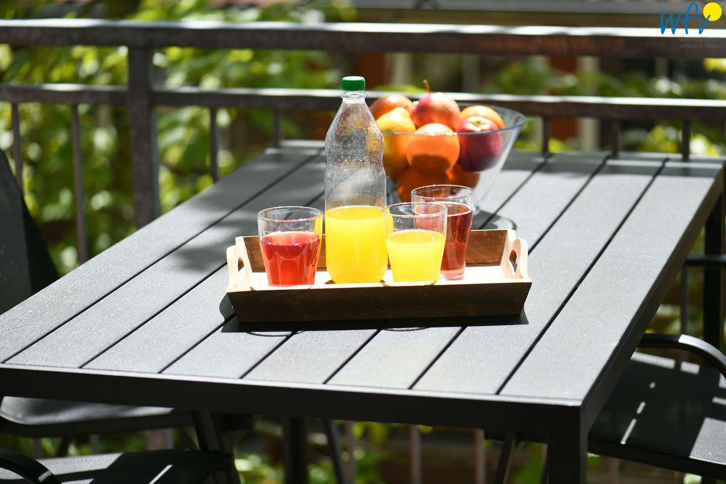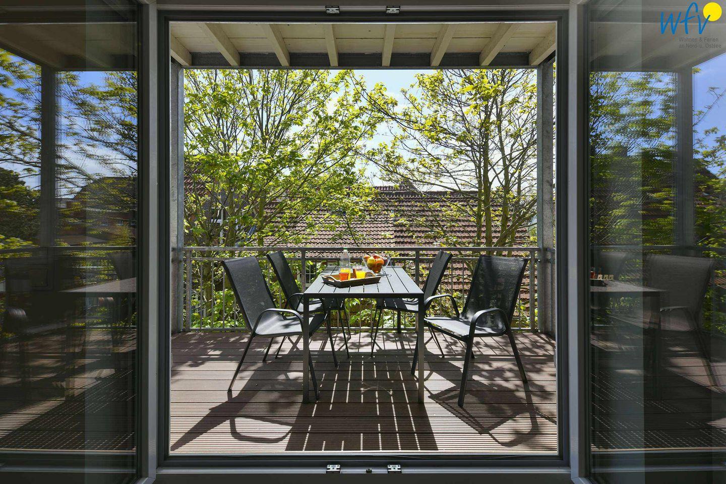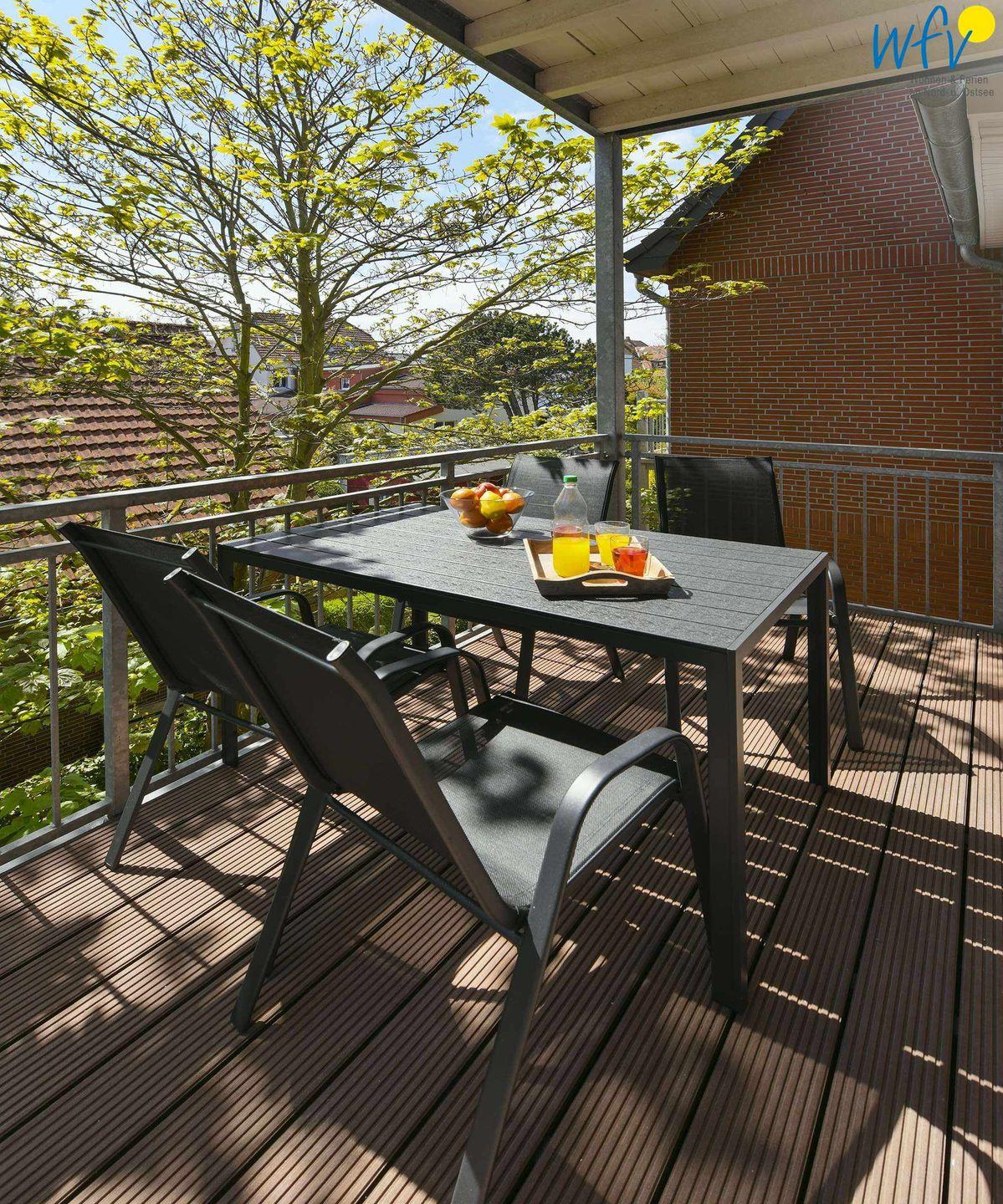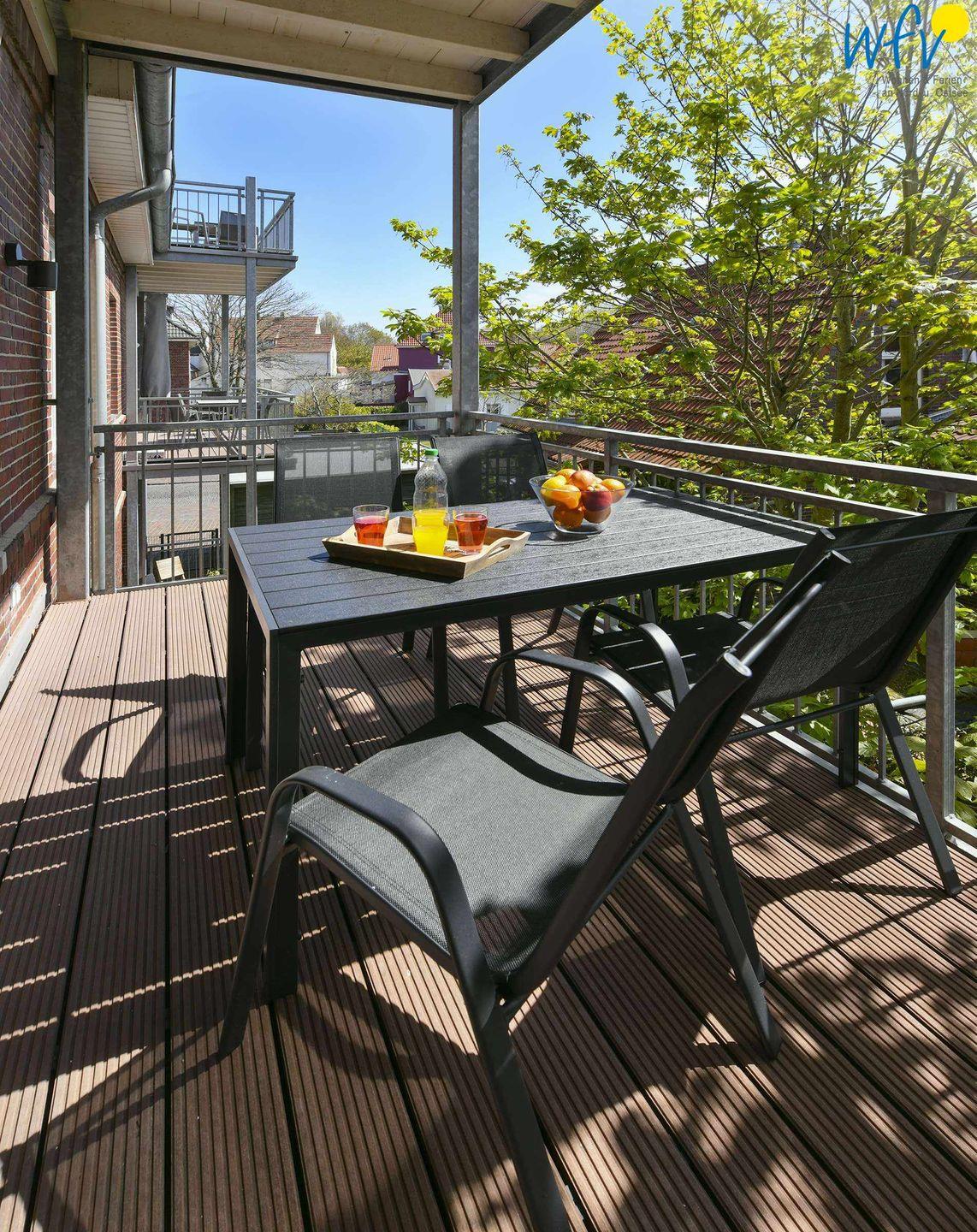 Der hübsch möblierte Südbalkon der Wangerooger Ferienwohnung lädt sowohl zu Sonnenbädern, als auch zu erholsamen Stunden am Abend ein! Hier können Sie wunderbar lesen, die Seele baumeln lassen oder den Tag bei einem guten Glas Wein ausklingen lassen.