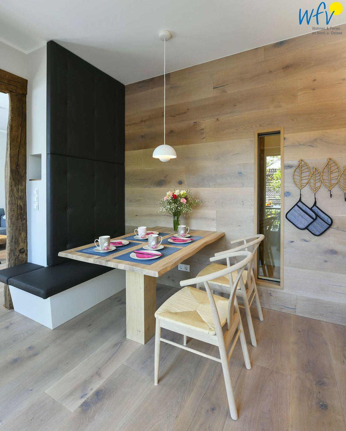 Genießen Sie exklusiven Wohnkomfort in Ihrem Urlaub auf Wangerooge! Eine stilvolle Einrichtung, große Fenster mit schönem Lichteinfall sowie geschmackvolle Accessoires machen diese Ferienwohnung zu Ihrer persönlichen Wohlfühloase auf Wangerooge. Besonders die Kombination aus Historie und Moderne durch frei gelegte Holzbalken und einer hellen modernen Ausstattung wirkt sehr charmant!